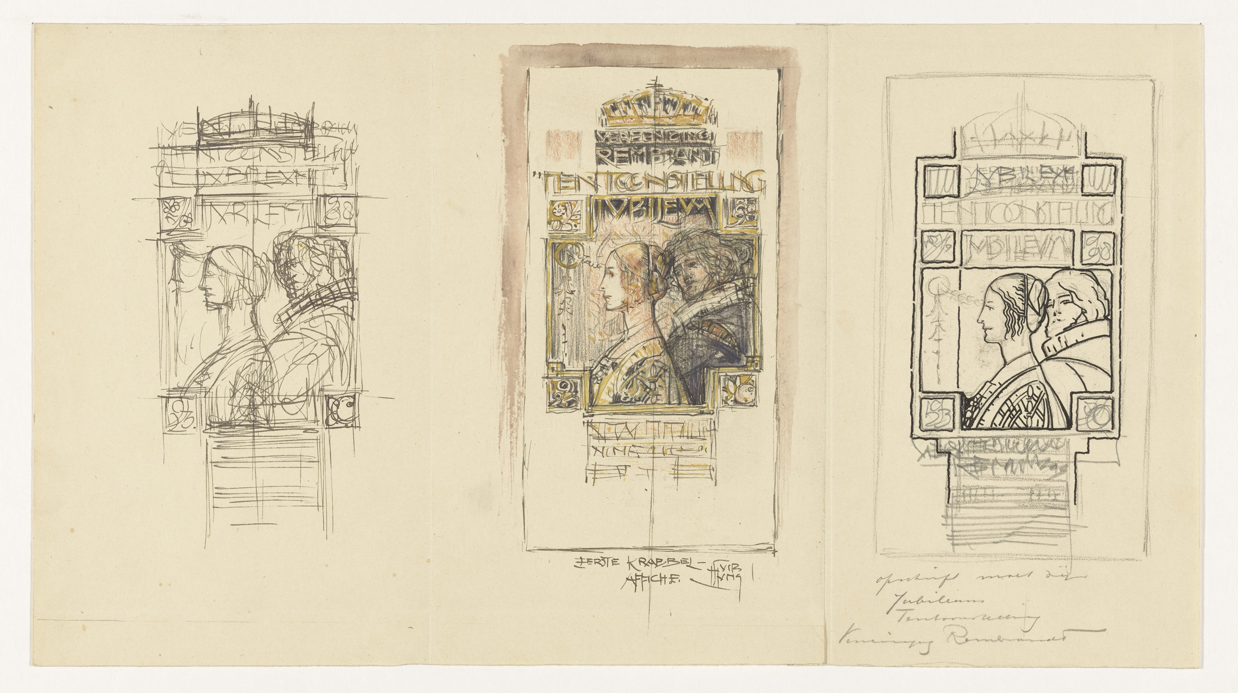 Drie ontwerpen voor affiches voor de tentoonstelling...