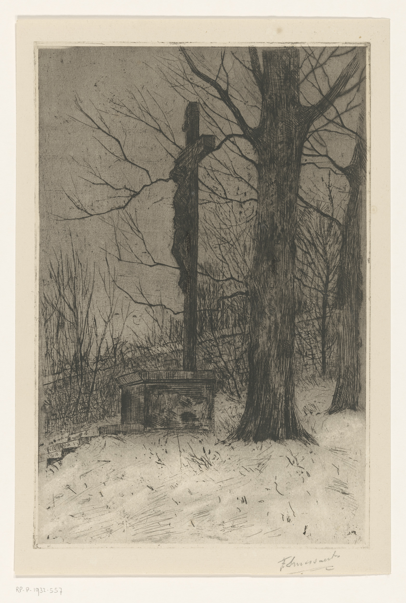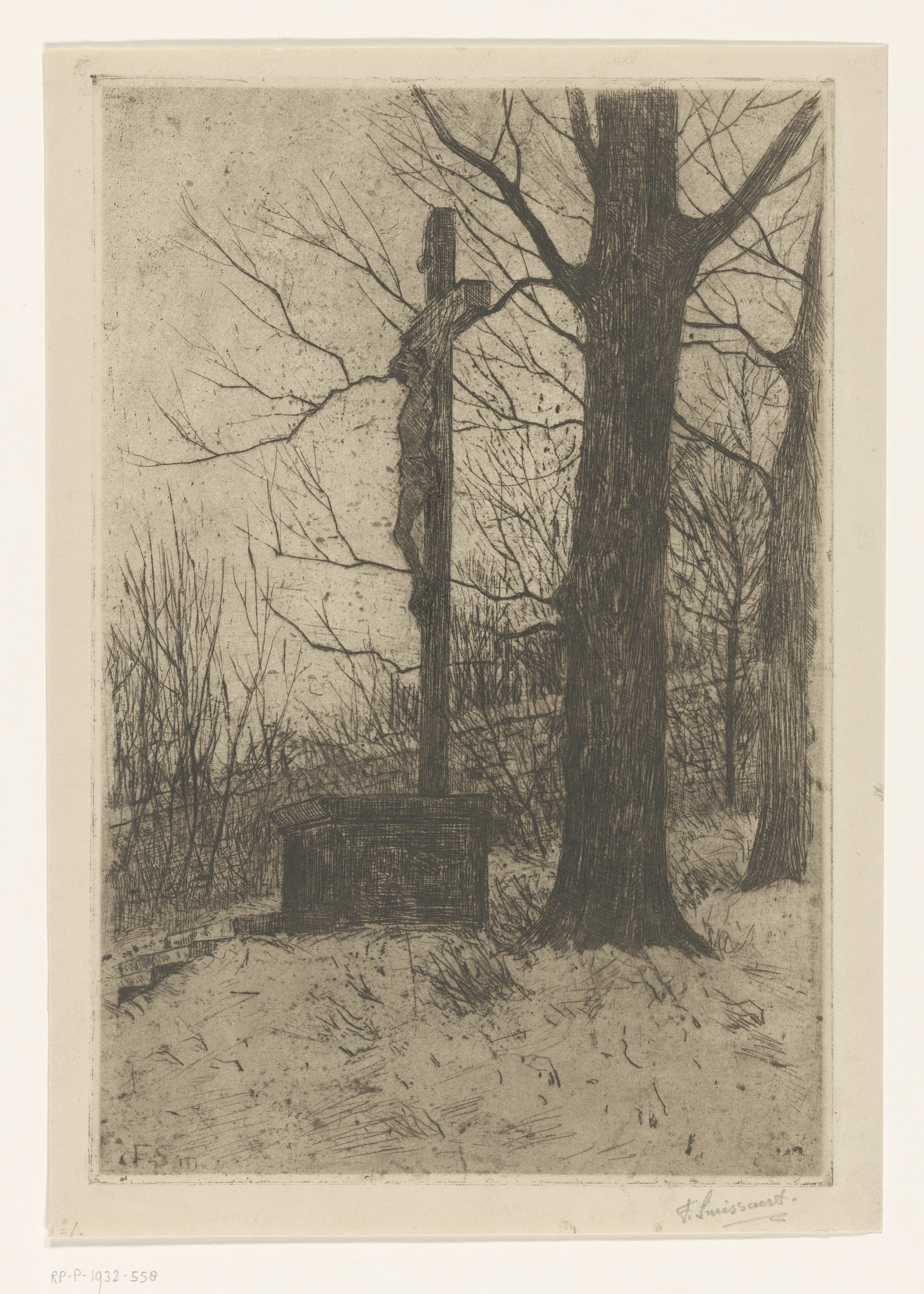 Crucifix naast boom