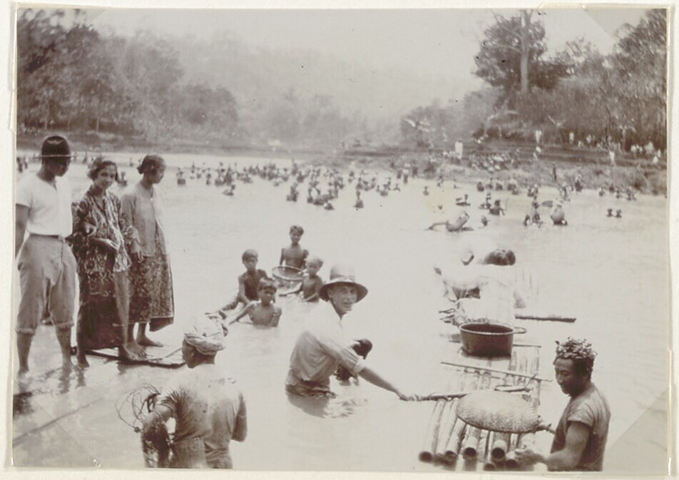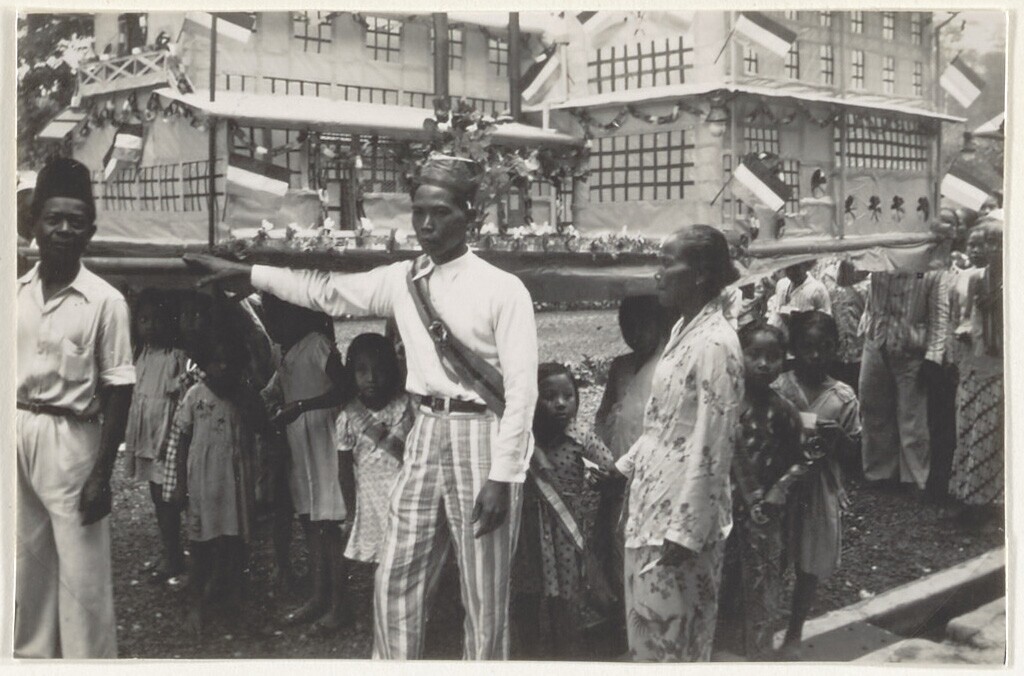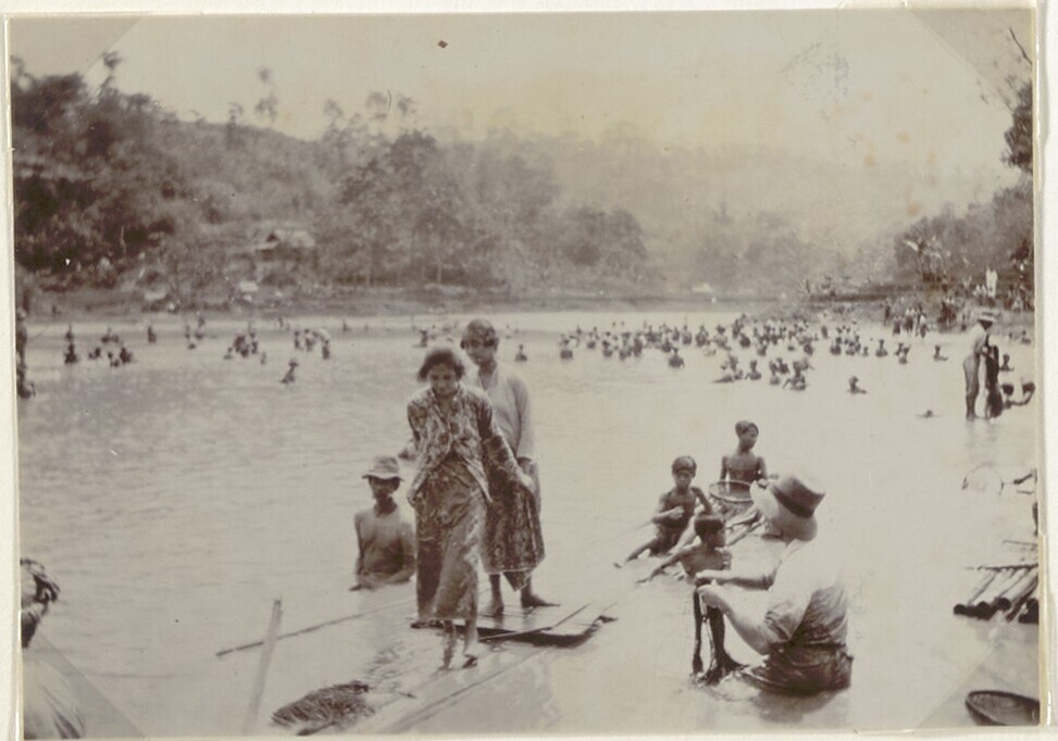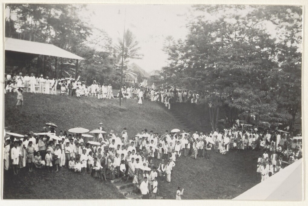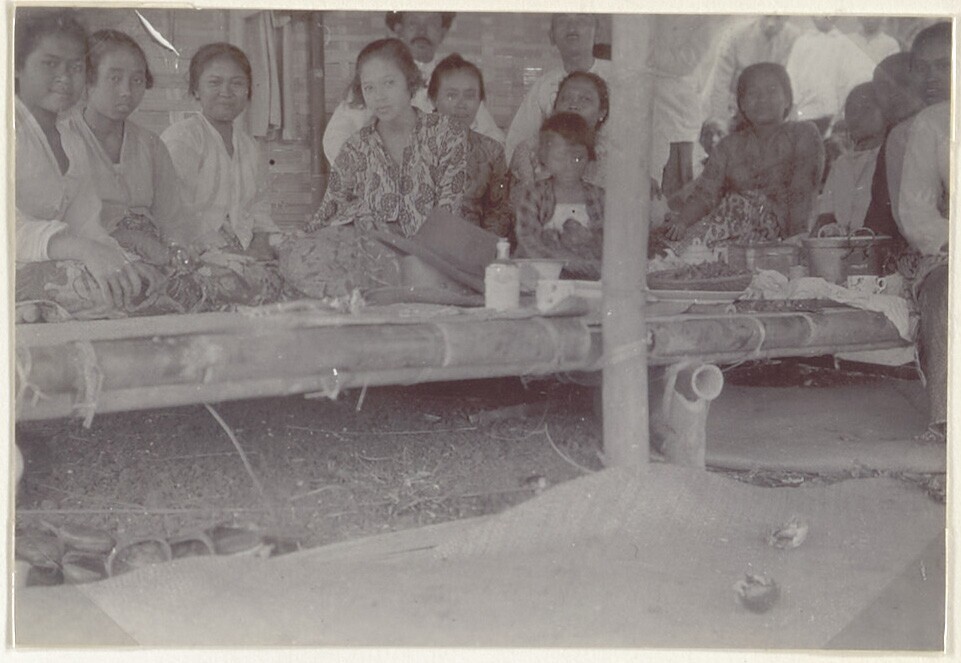 Een groep Javaanse vrouwen die op een verhoging zitten