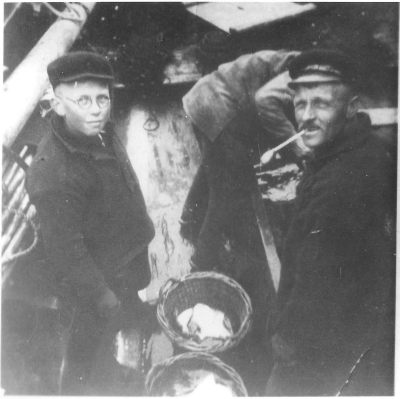 Lossen van aal, Lemmer 1943. Vooraan Willem Toering