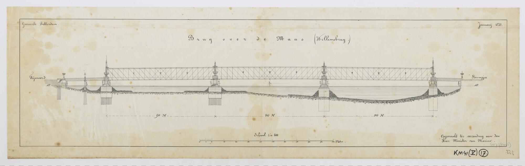 Zijaanzicht van de Willemsbrug over de Maas te Rotte...