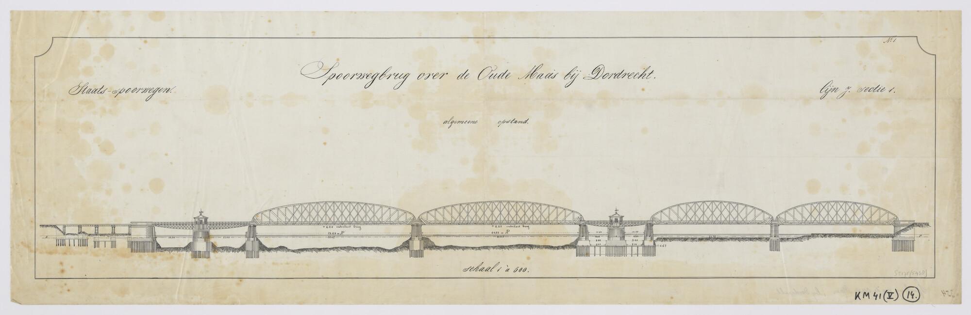 Aanzicht van de spoorbrug over de Oude Maas te Dordr...