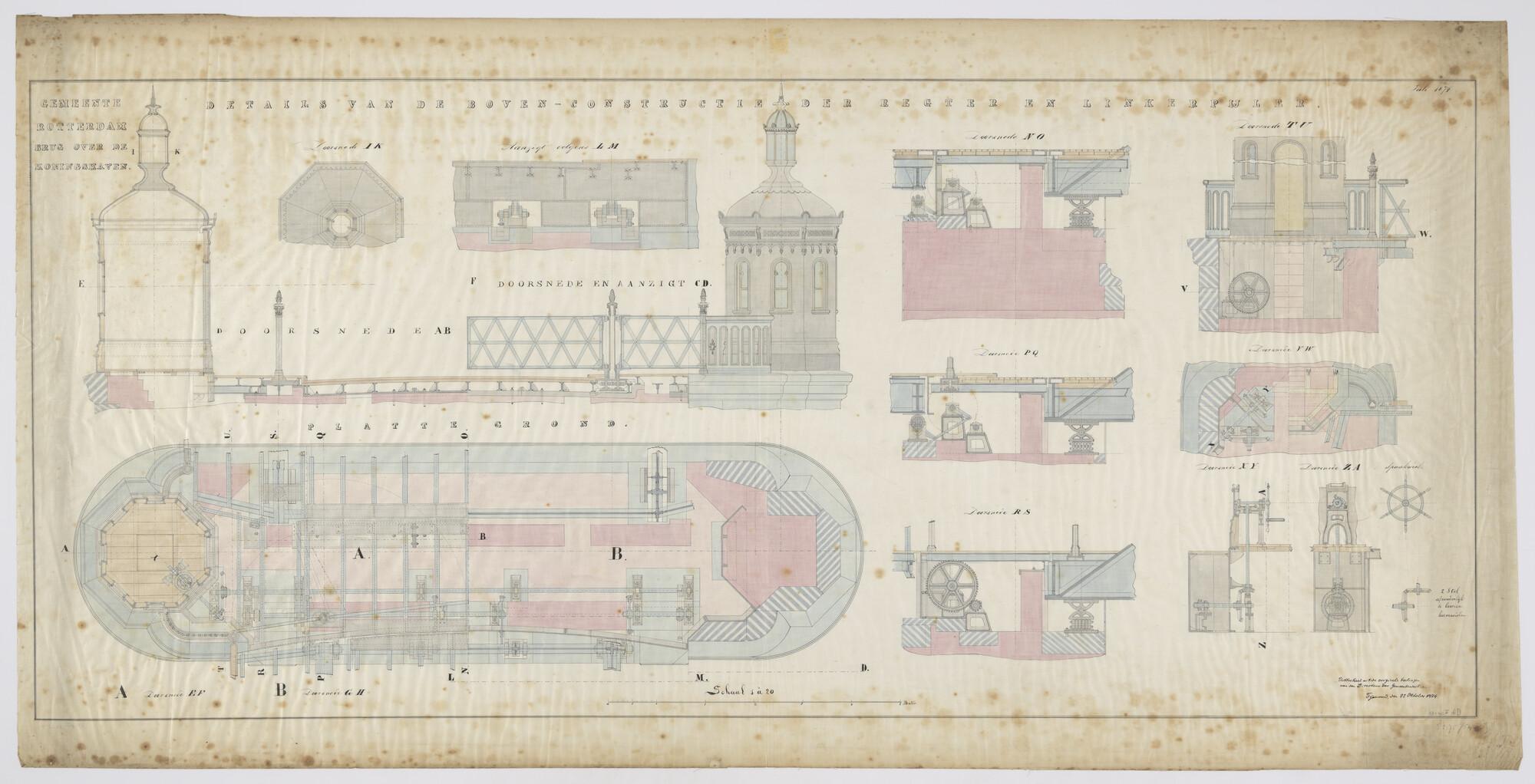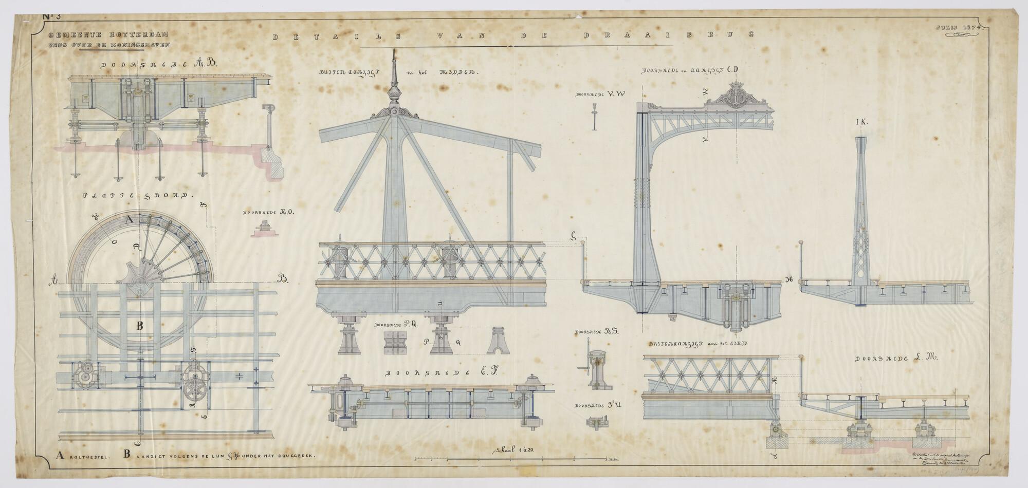 Langsdoorsnede van de brug over de Koningshaven te R...