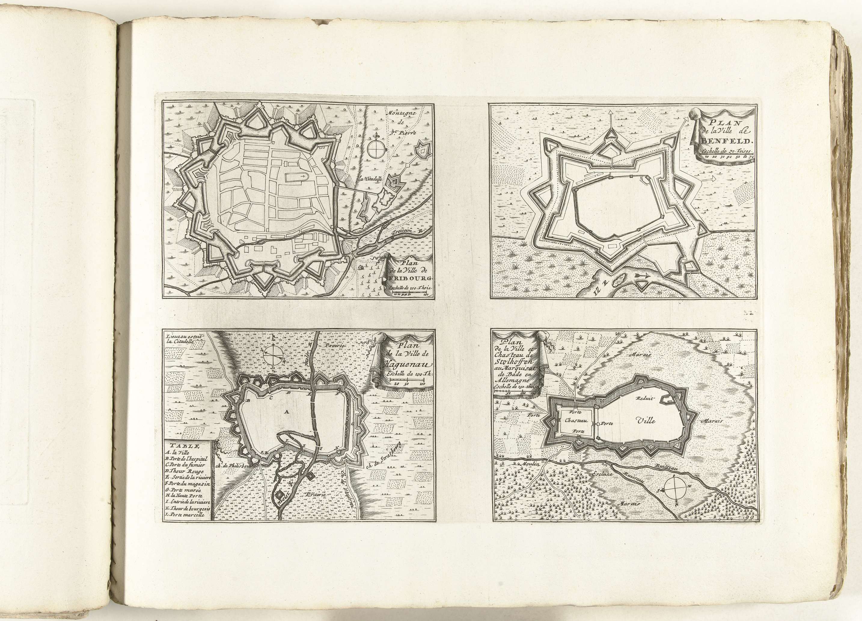 Plattegronden van Fribourg, Benfeld, Haguenau en Sto...