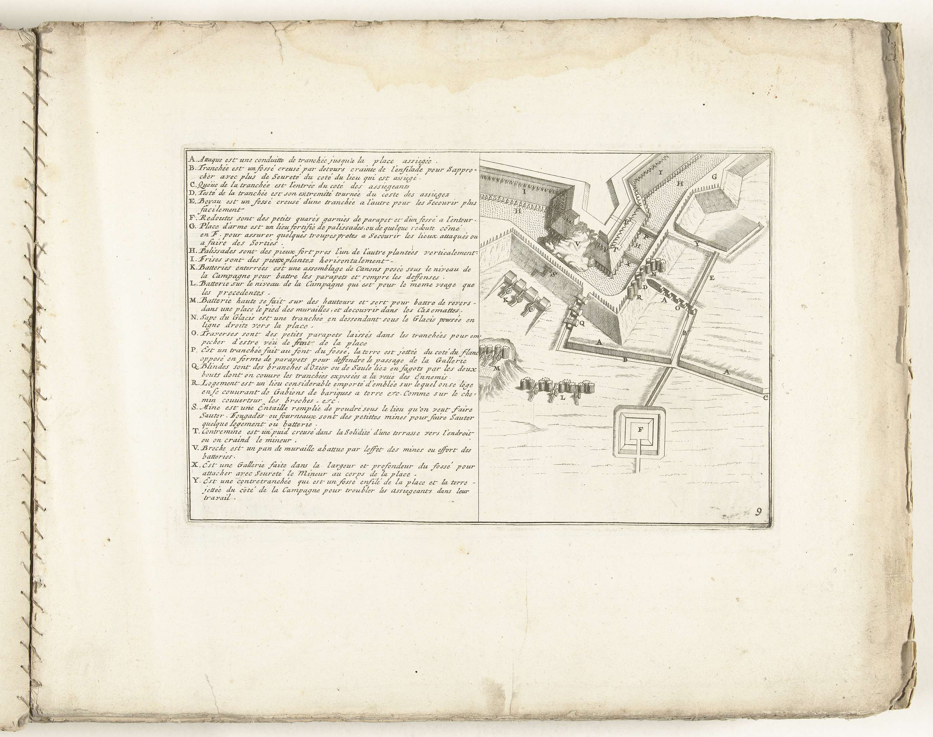 Plaat over loopgraven bij een bastion, ca. 1702