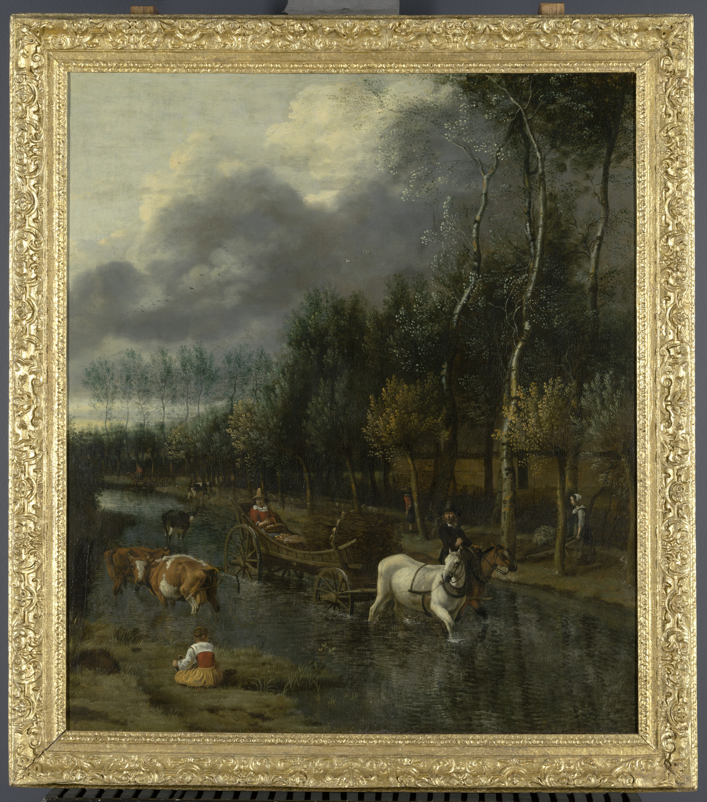 Een boerenwagen in een doorwaadbare plaats