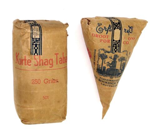 Tabakszakken. Langwerpige grauwbruin iets bollende ...