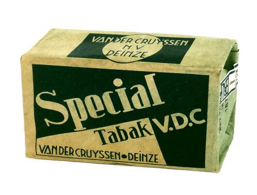 Shag tabak. Langwerpig groen gelig pakje shag tabak...