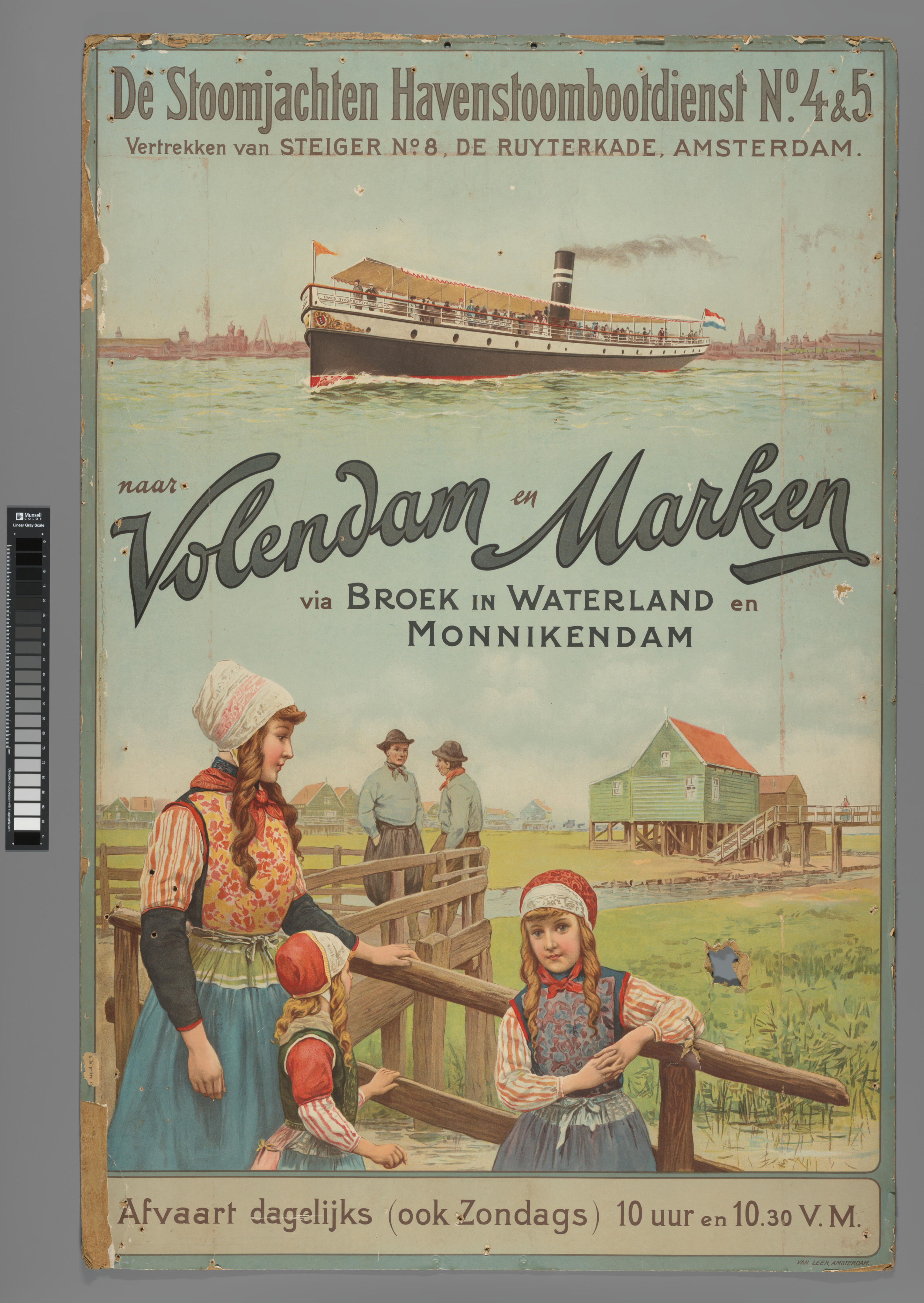 Affiche van de stoombootdienst van Amsterdam naar Vo...