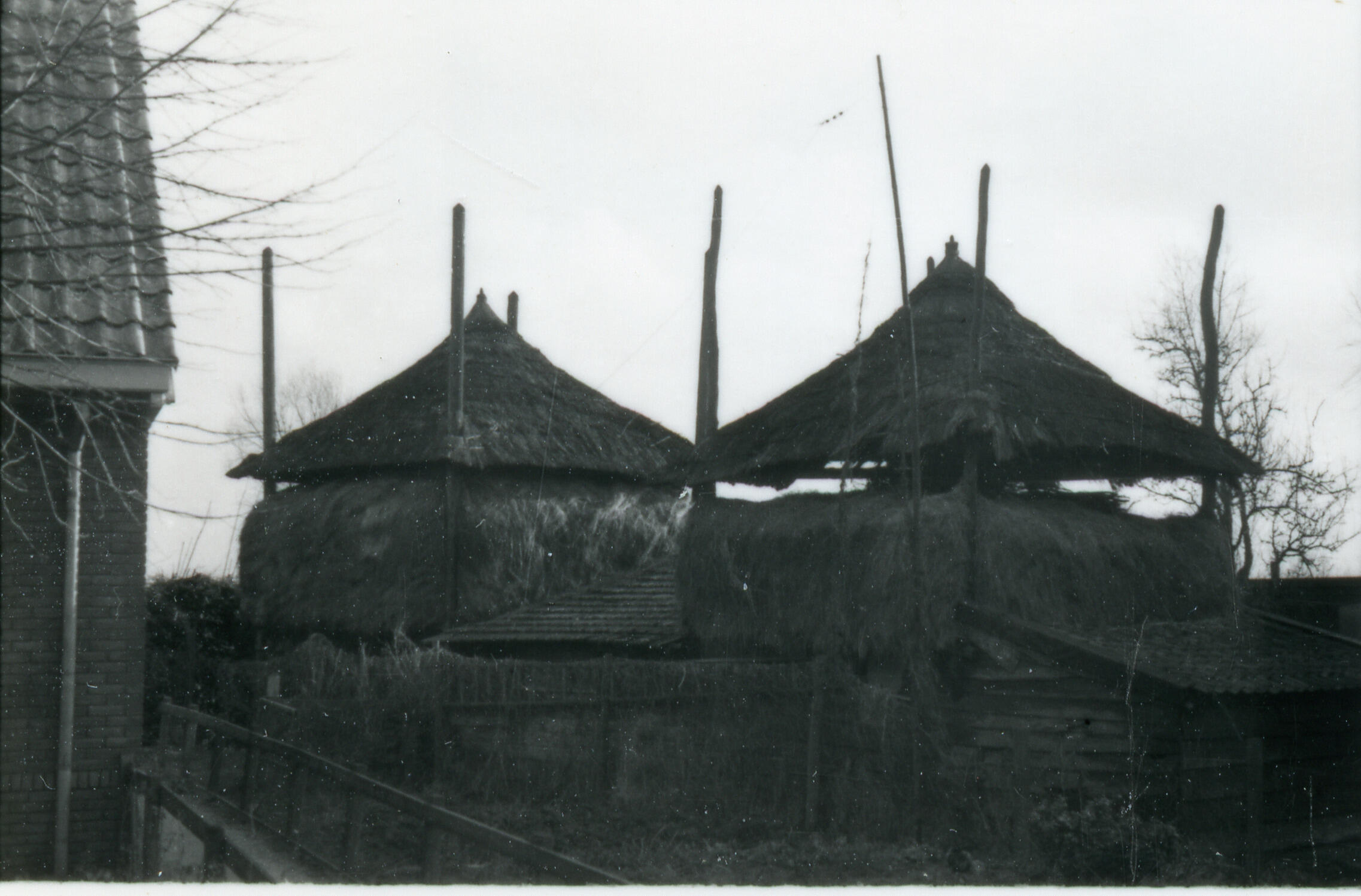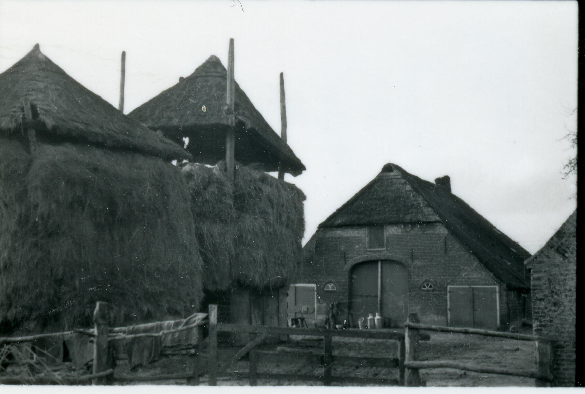 Boerderij en hooibergen, Veenendaal, 1938 (zwart-wit...