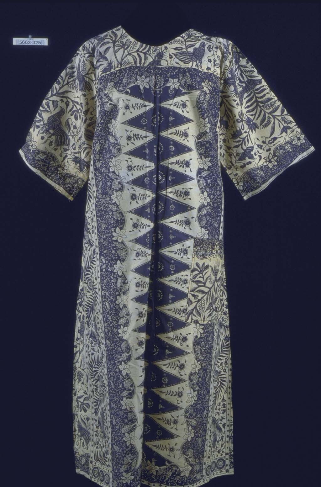 Kaftan met korte mouwen met vogels en florale motieven