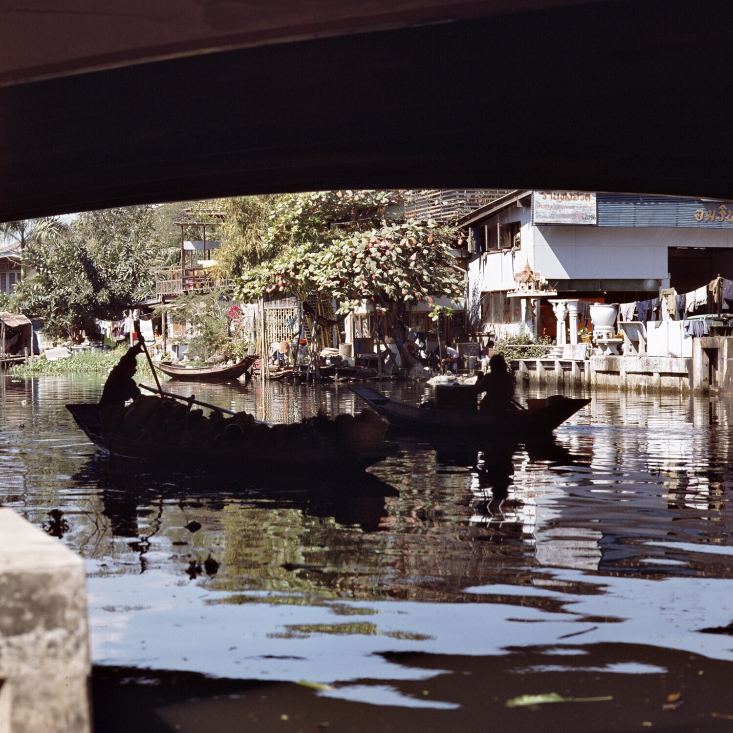 Aan de overkant van de klong de bloemenmarkt,behoren...
