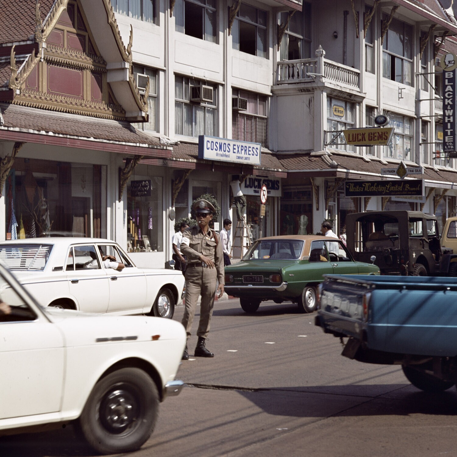 Bangkok Straat langs de zgn Phra Mane Ground, het te...
