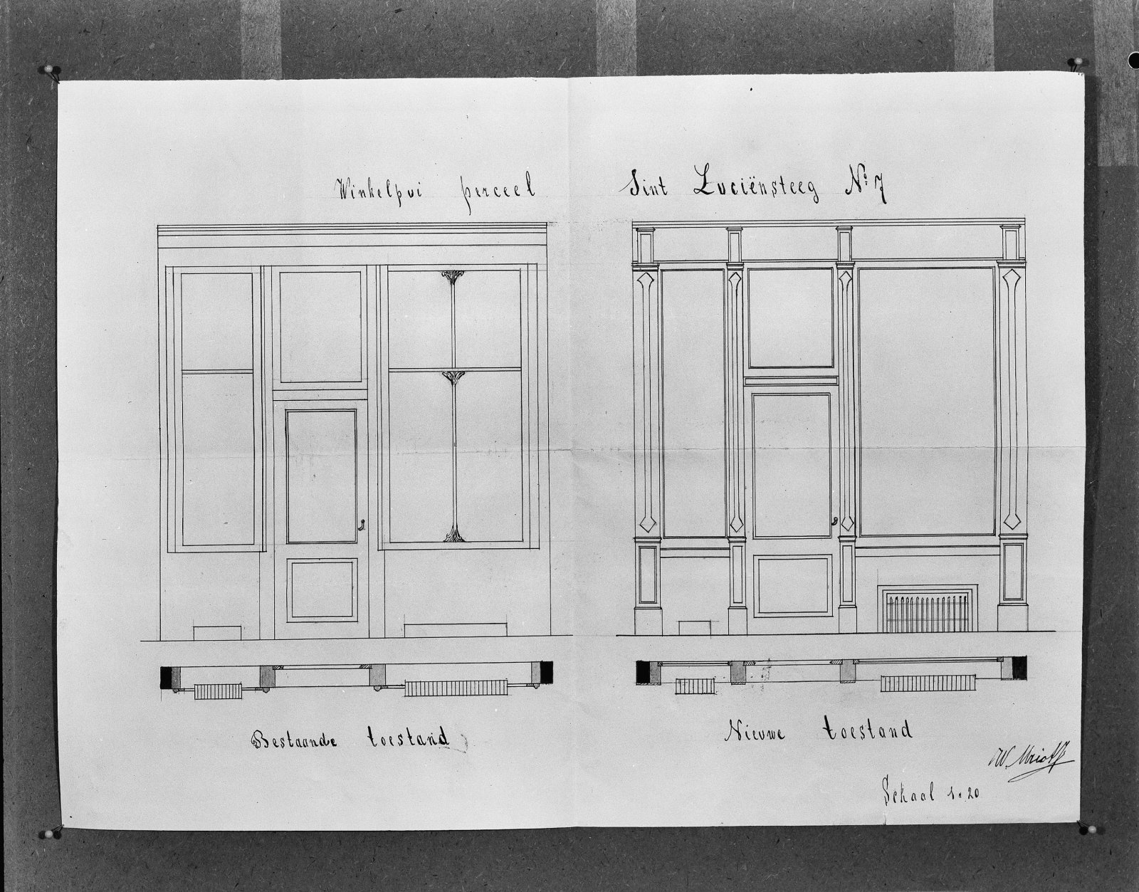 St. Luciënsteeg 3, schets onderpui 1889, reproductie