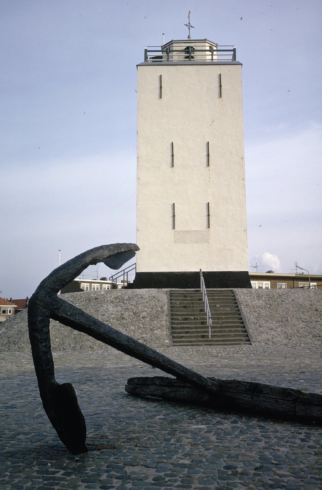 Overzicht vuurtoren vanuit landszijde met stokanker