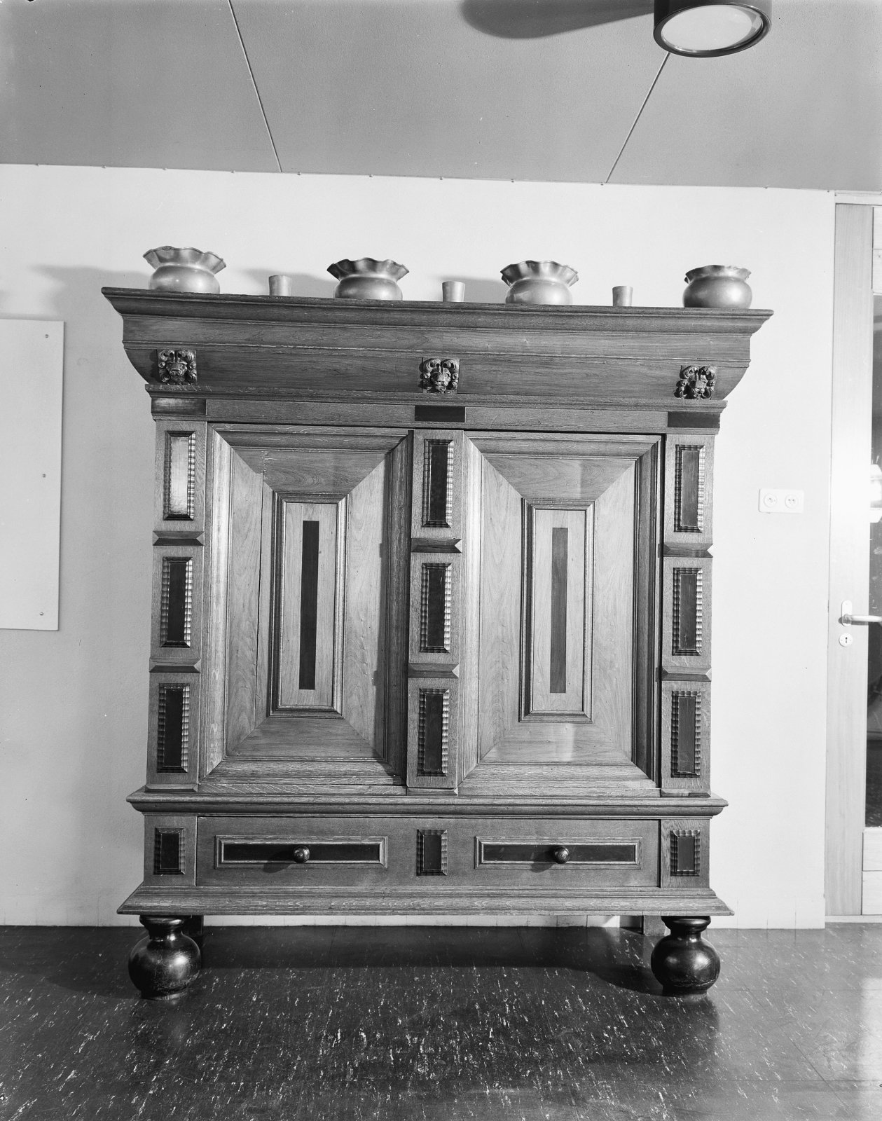kabinetkast met tinnen potten