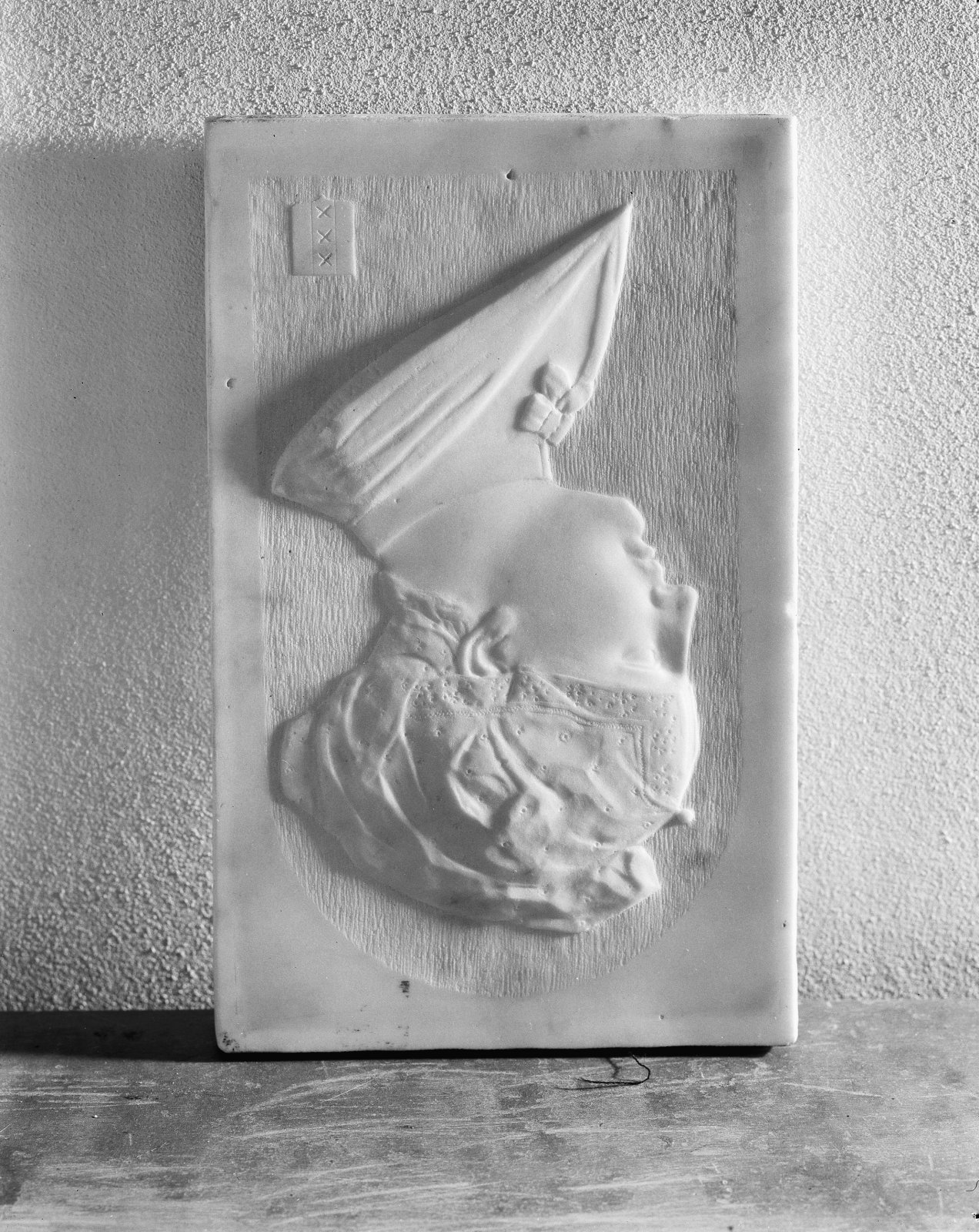 marmeren reliëf met kop van weesmeisje van J.W. Best...