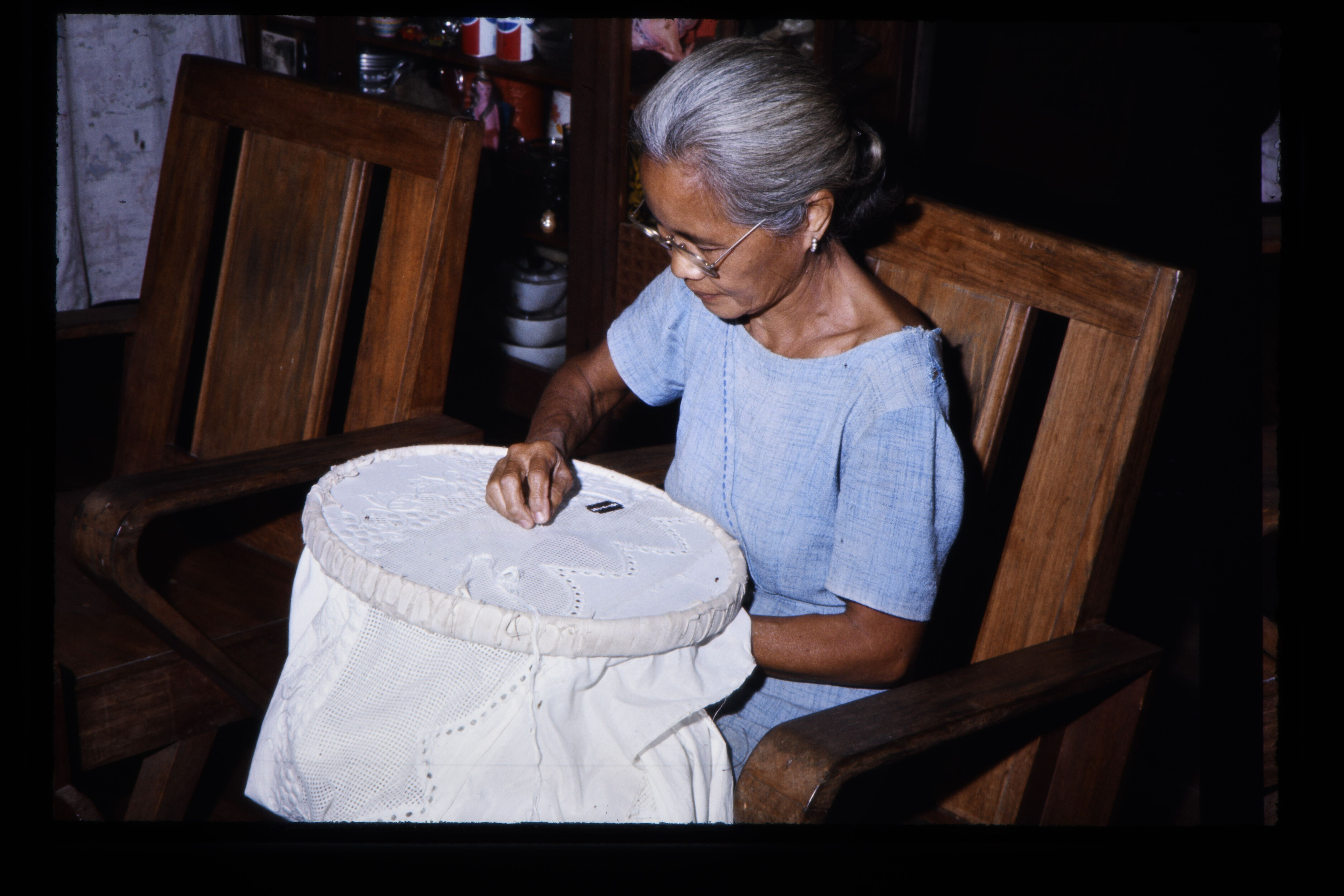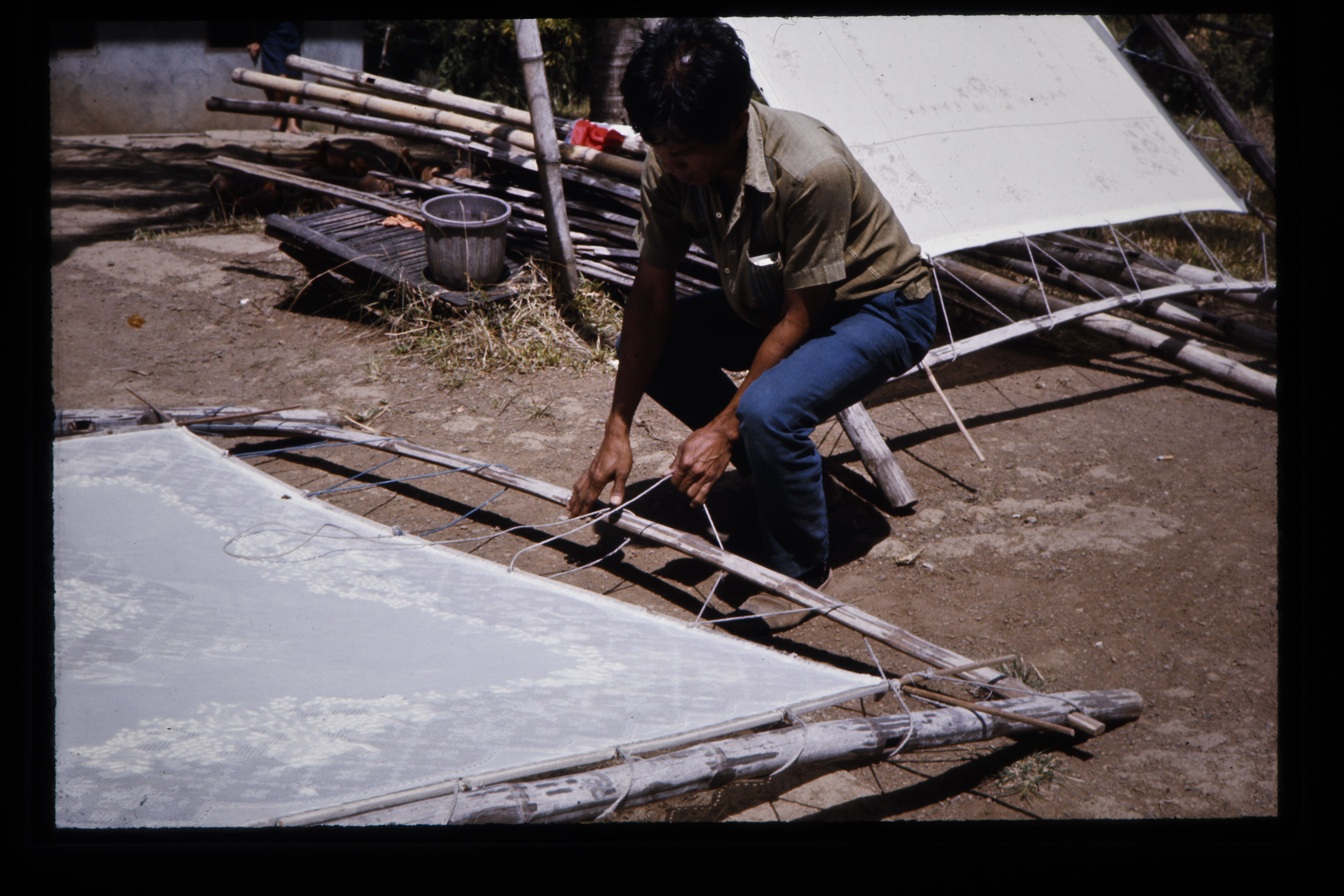 'Het borduren van de lappen stof waaruit de Barong-t...
