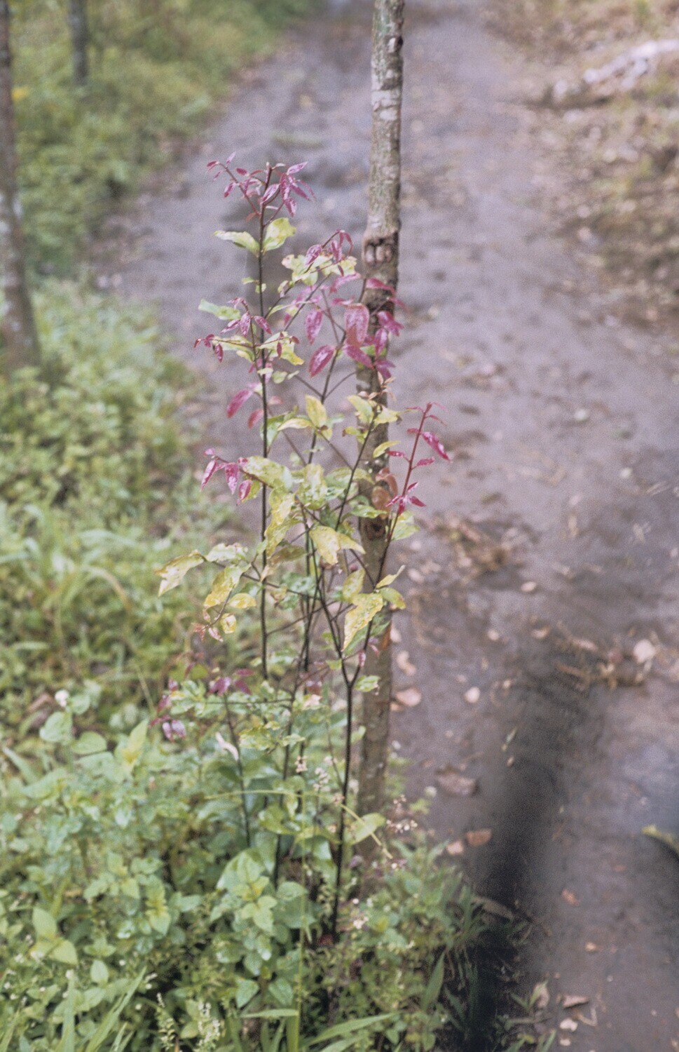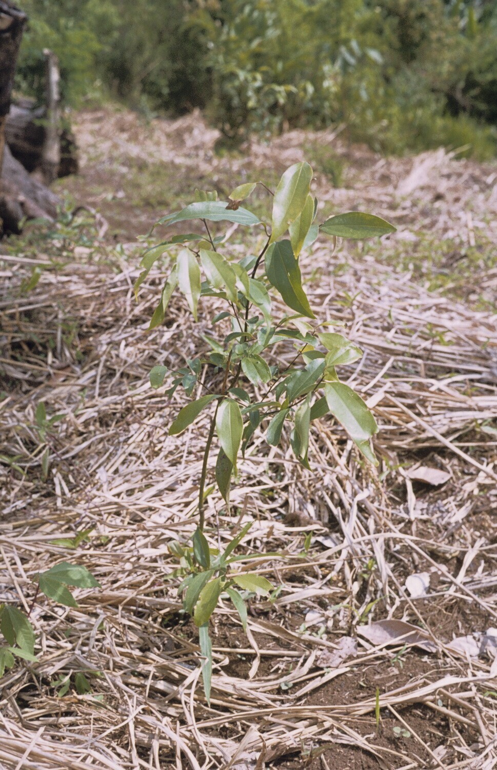 Jonge kaneelaanplant. Let op mulching op de grond.