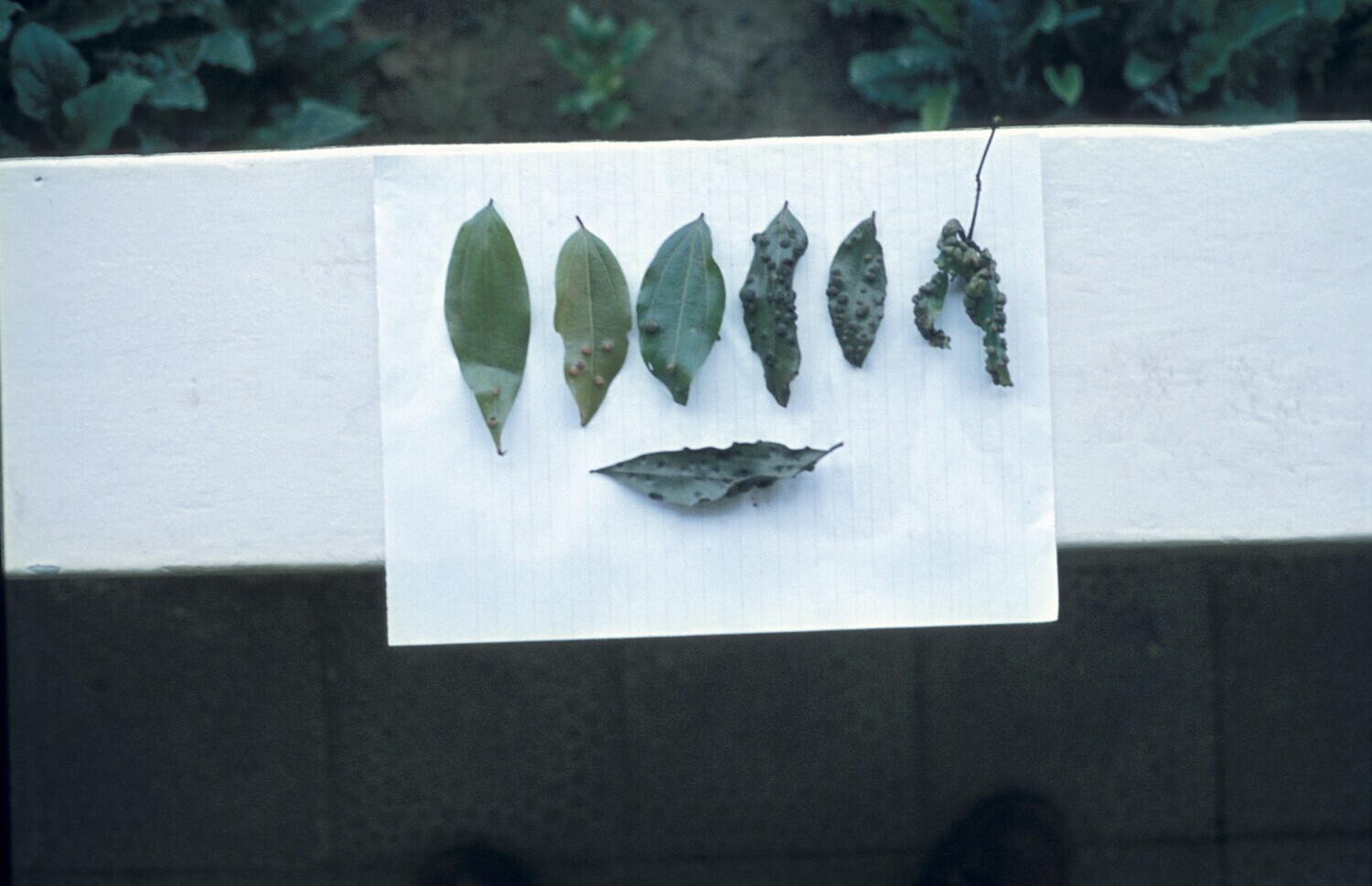 'Close-up van ''blisterblight'' kaneel. V.r.n.l. een...