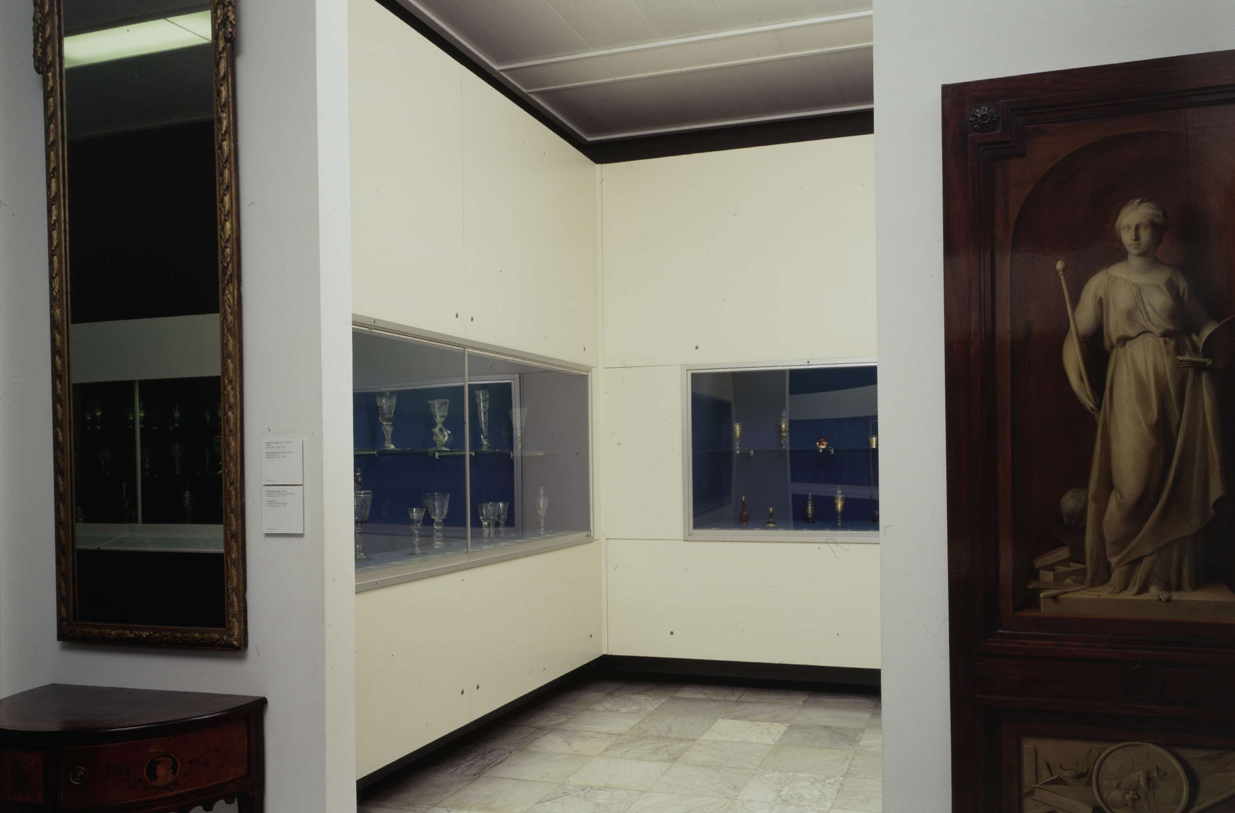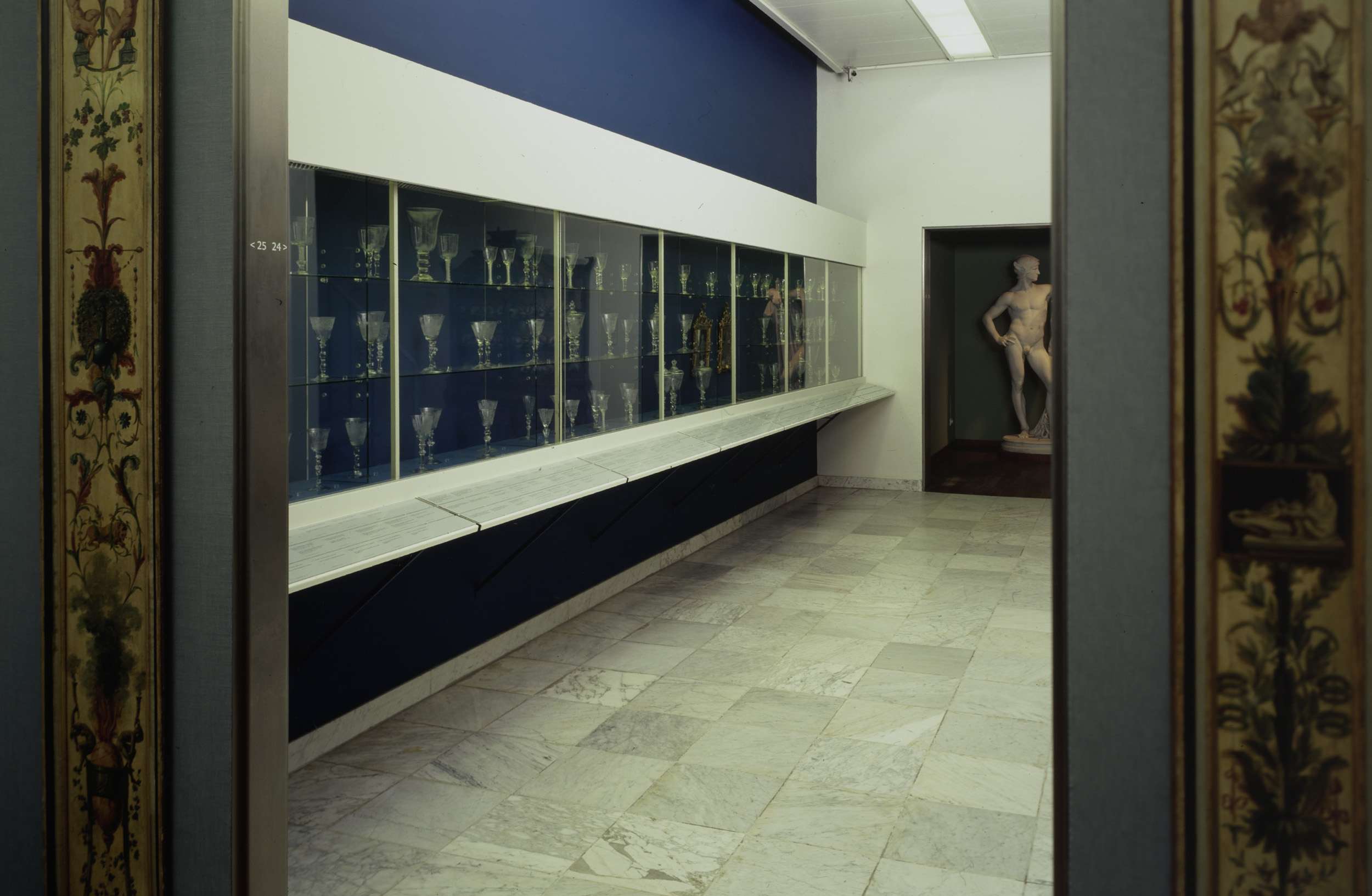 Doorkijk via doorgang naar zaal 24 met vitrines met ...