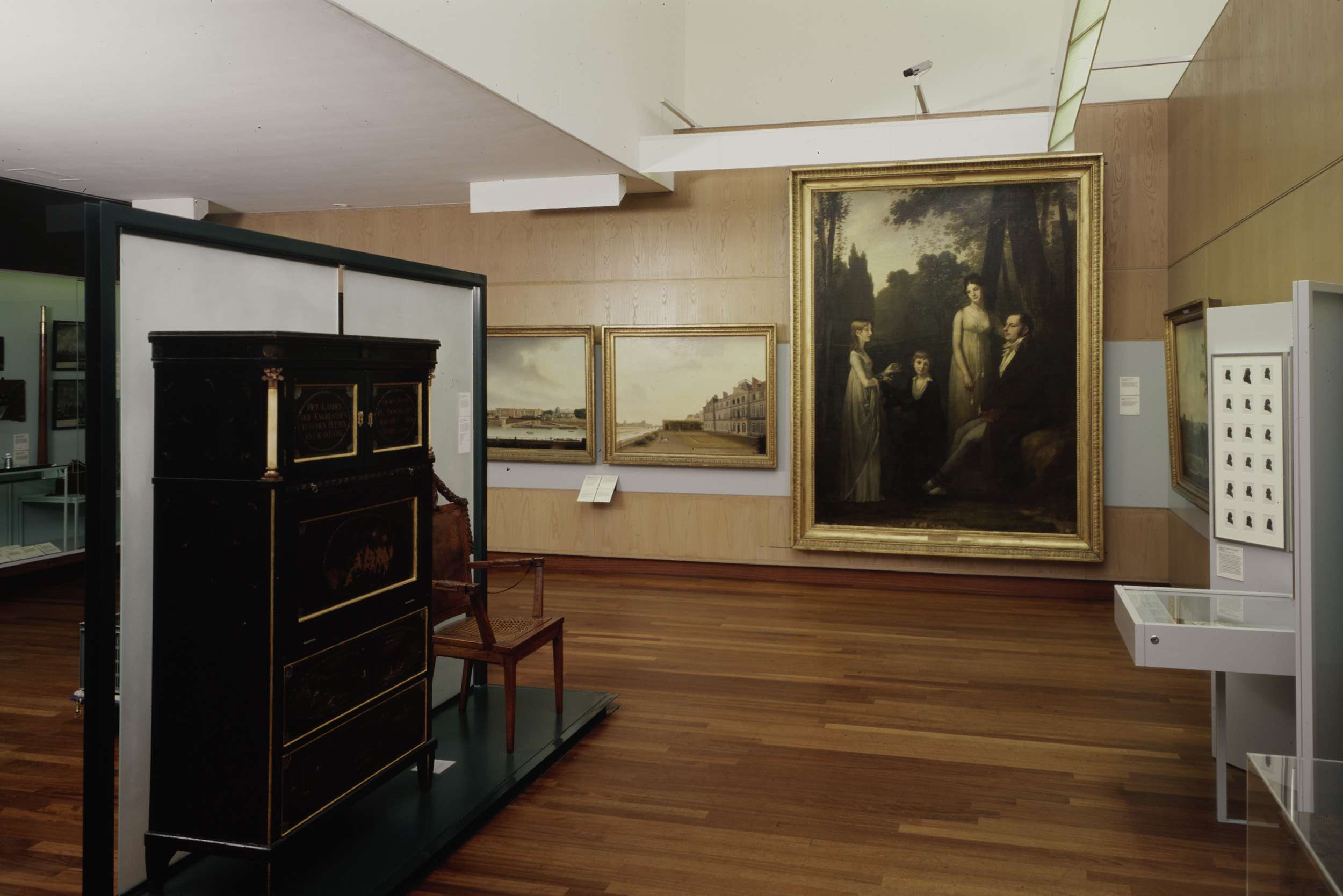 Zaal 109 met schilderijen en meubels waaronder een kast