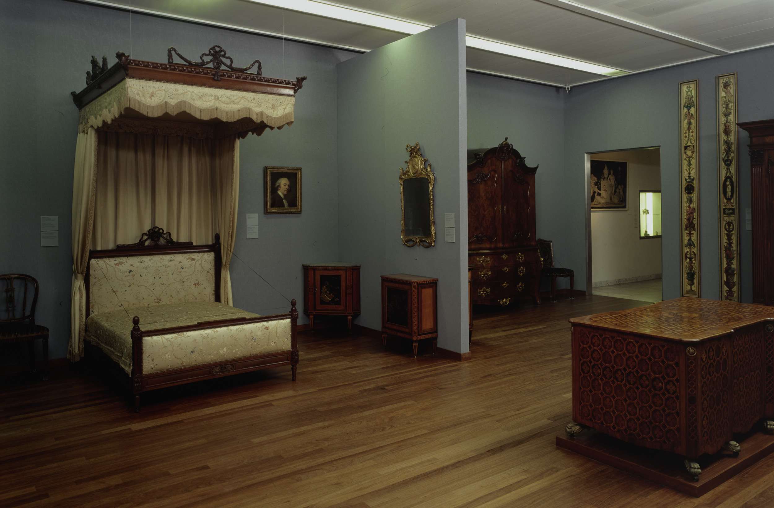 Zaal 25 met onder meer meubelen waaronder een hemelb...