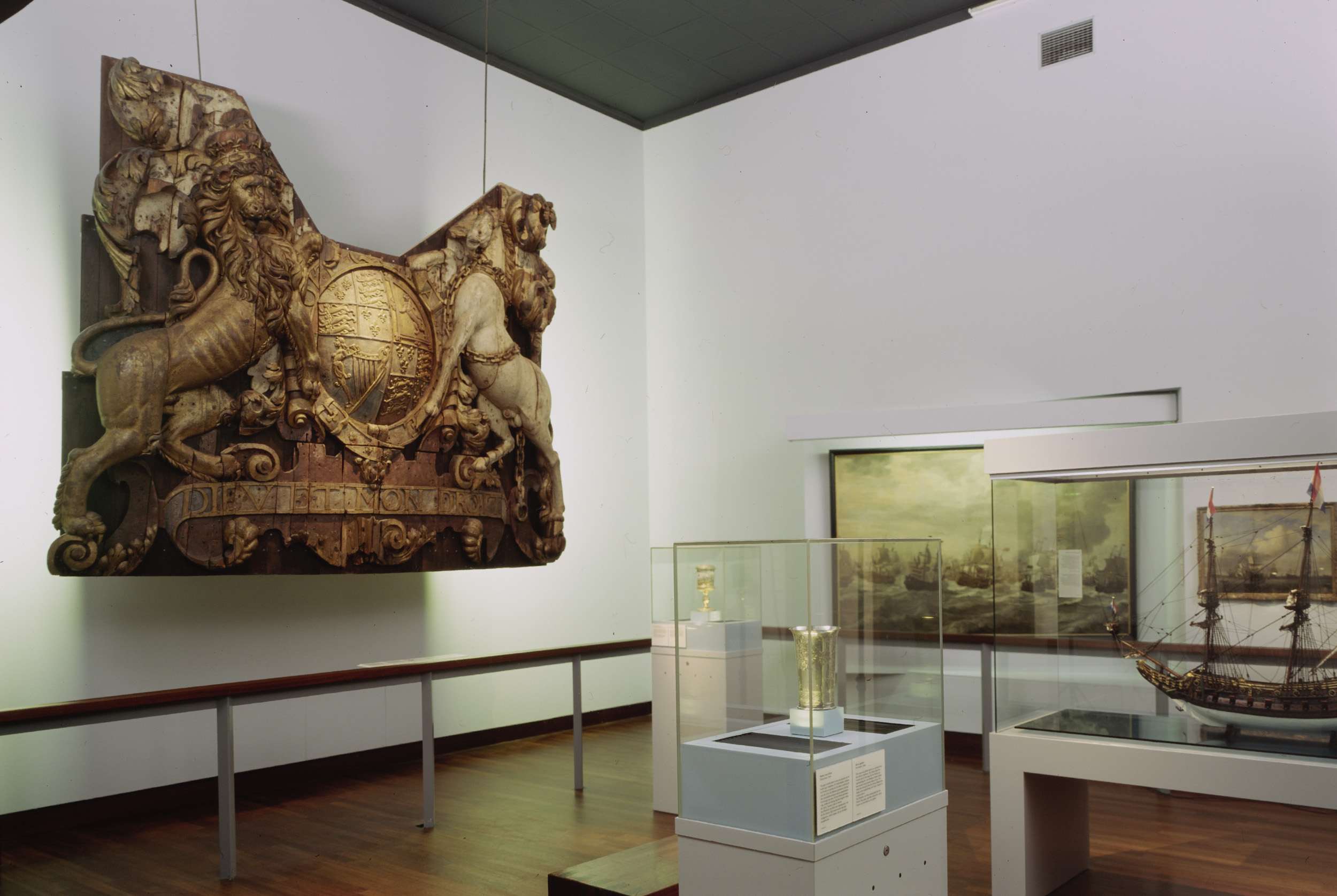Zaal 104 met schilderijen en harnas