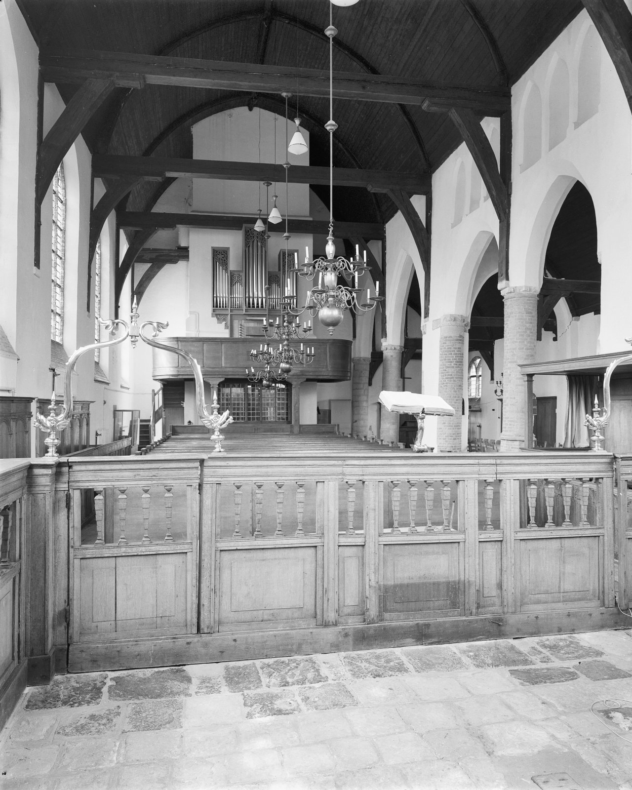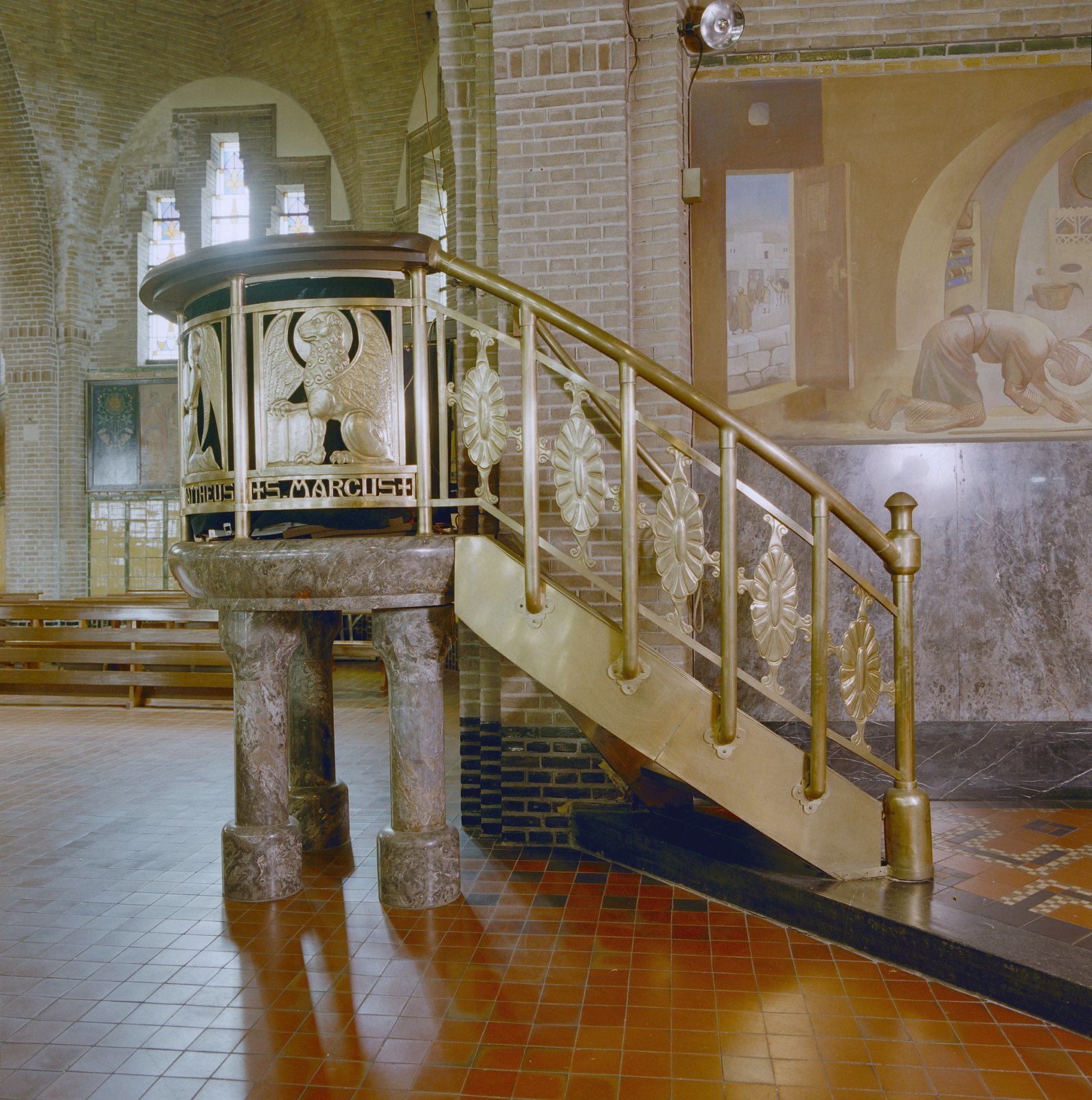 Interieur, preekstoel op marmeren zuilen (Lambert Lo...