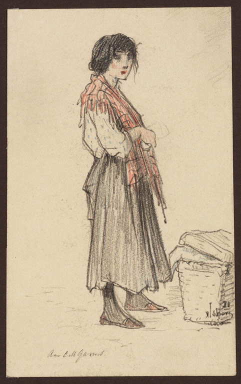 Zittende vrouw en profil naar links