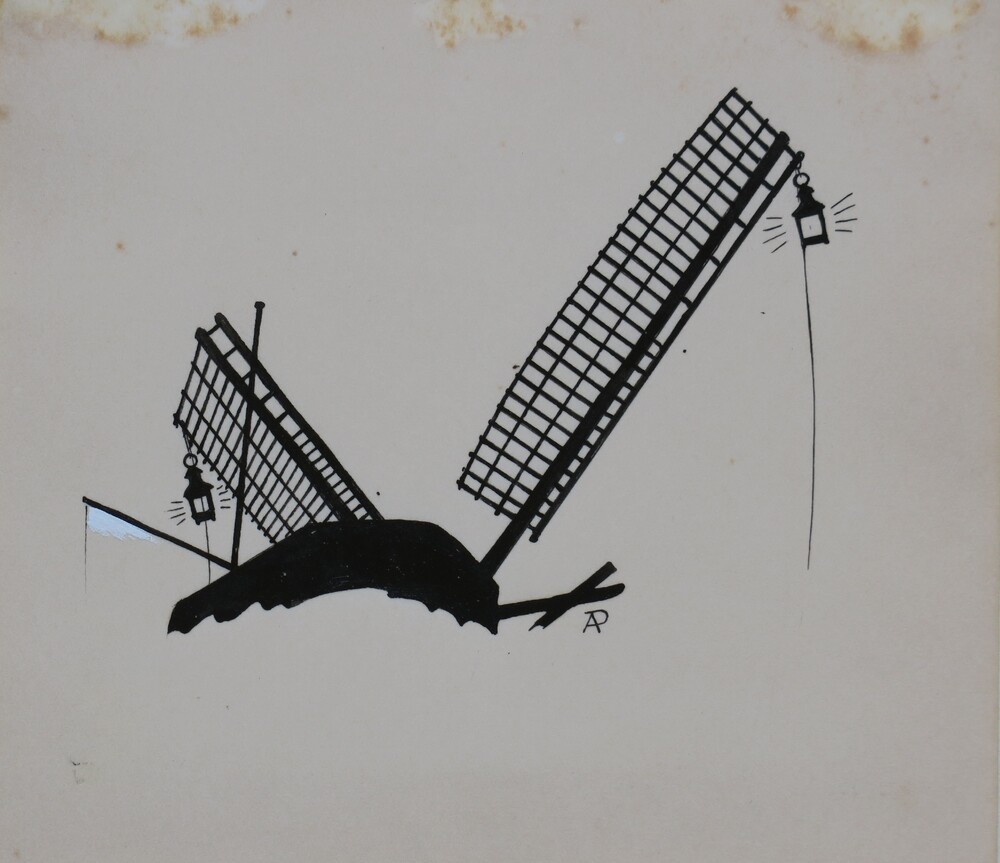 Lantaarns op de wieken van de molen gehesen