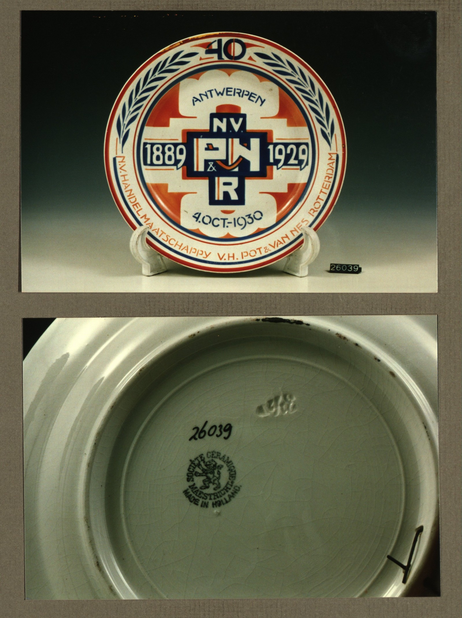 Wandbord met decor Handelsmij.Pot en Nes Rotterdam 1...