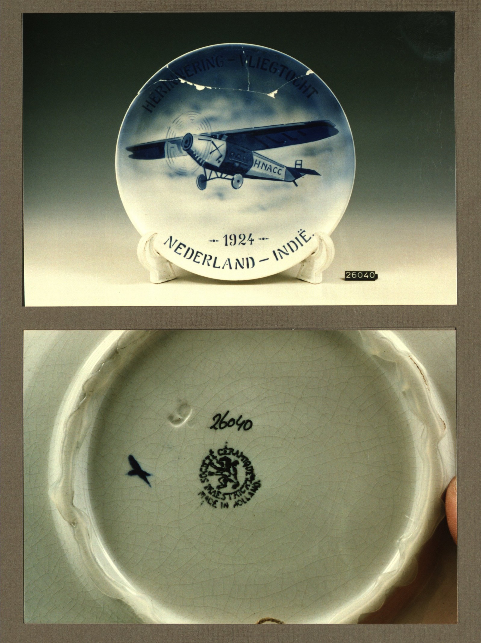 Wandbord met decor Herinnering vliegtocht Nederland-...