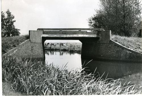 Foto in zwart-wit van een brug over een vaart door J...