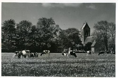 Foto in zwart-wit van koeien in het weiland naast ee...