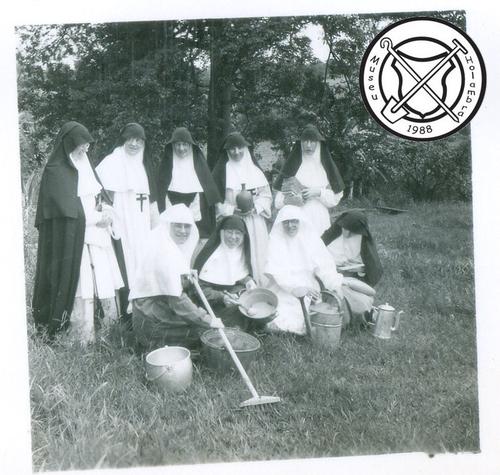 V.l.n.r., staand: mevr. Groot; mevr. Derks; mevr. Bruins; pater Paulinus; mevr. Schoenmaker; mevr. Clijsters; mevr. Bakker; mevr. van Schaik; mevr. J. de Wit; V.l.n.r., gehurkt: Cis Bos; Margriet Clijsters; Dina Eltink; Maria Jeuken. (2)