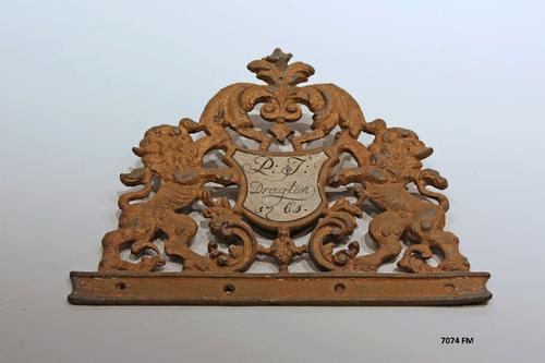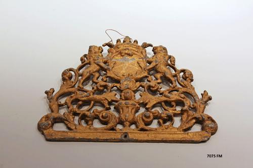 Verguld bovenlood met schild en leeuwen, voor stoelk...
