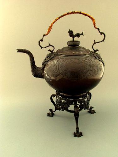 Kraantjeskan van tin, met goudbeschildering op zwart...