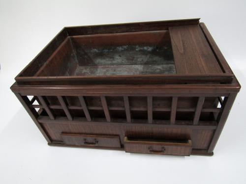 Rechthoekige houten theestoof, ofwel hibachi, met ko...