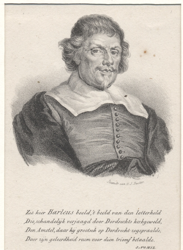 borstbeeld van Caspar Barlaeus, hoogleraar, gekleed ...