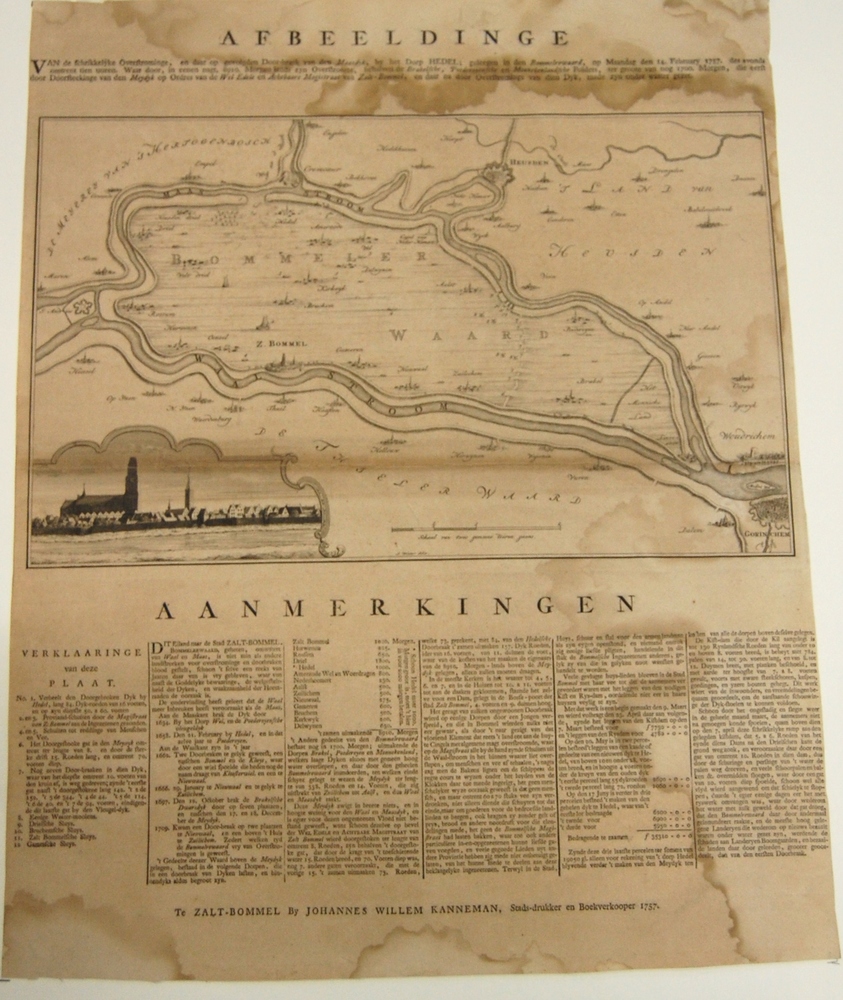 Gezicht op de dijkdoorbraak Hedel 1757 en verklaring...