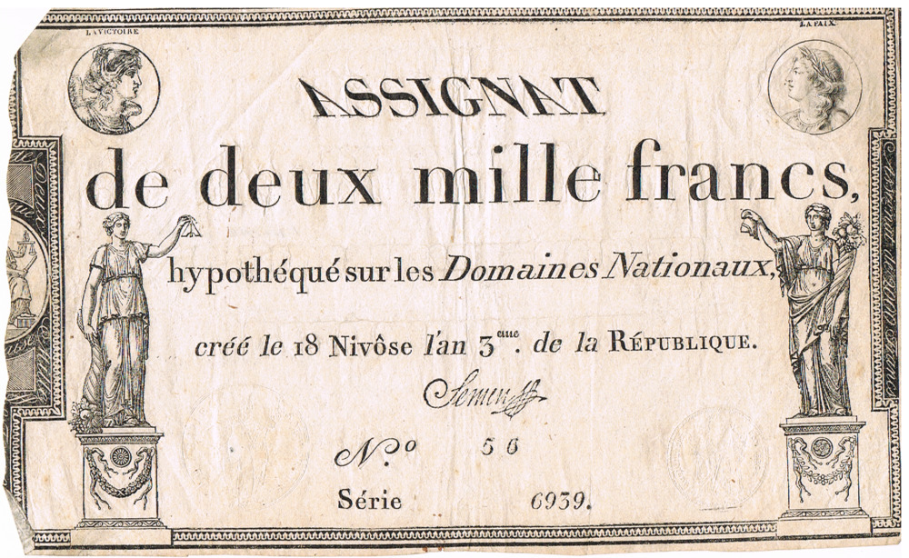 Assignat de deux mille francs. Dun papier door de Fr...
