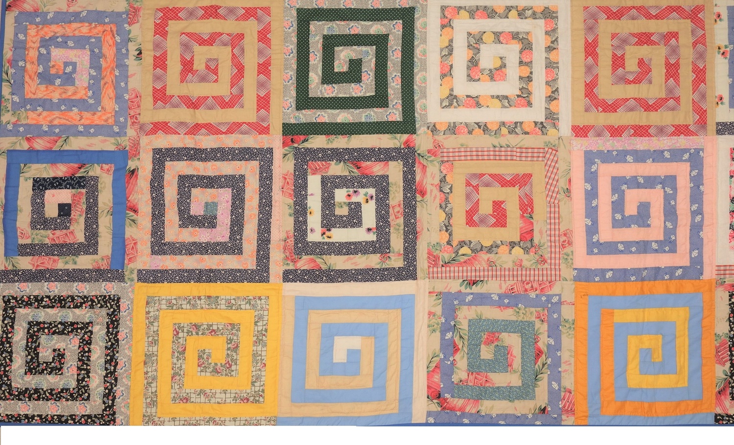 Factory woven and printed cloth hand stitched (running stitch) machine pieced. (1)