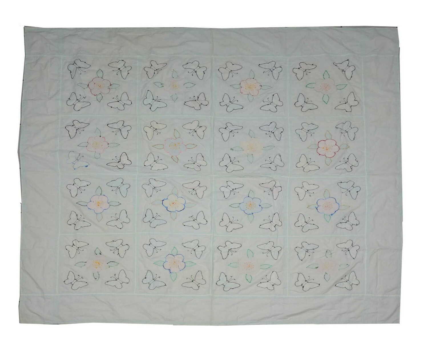 Factory woven and printed cloth appliqué hand quilted (1)