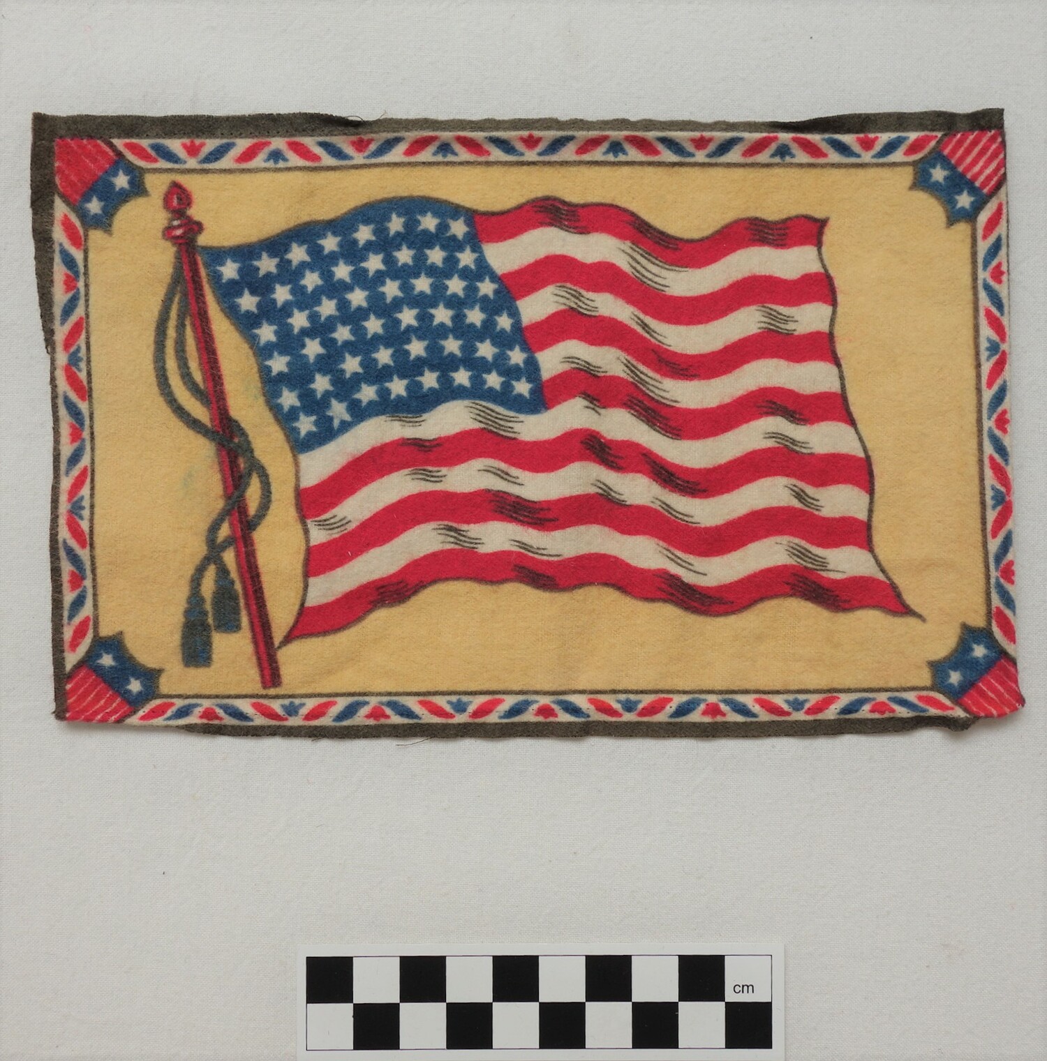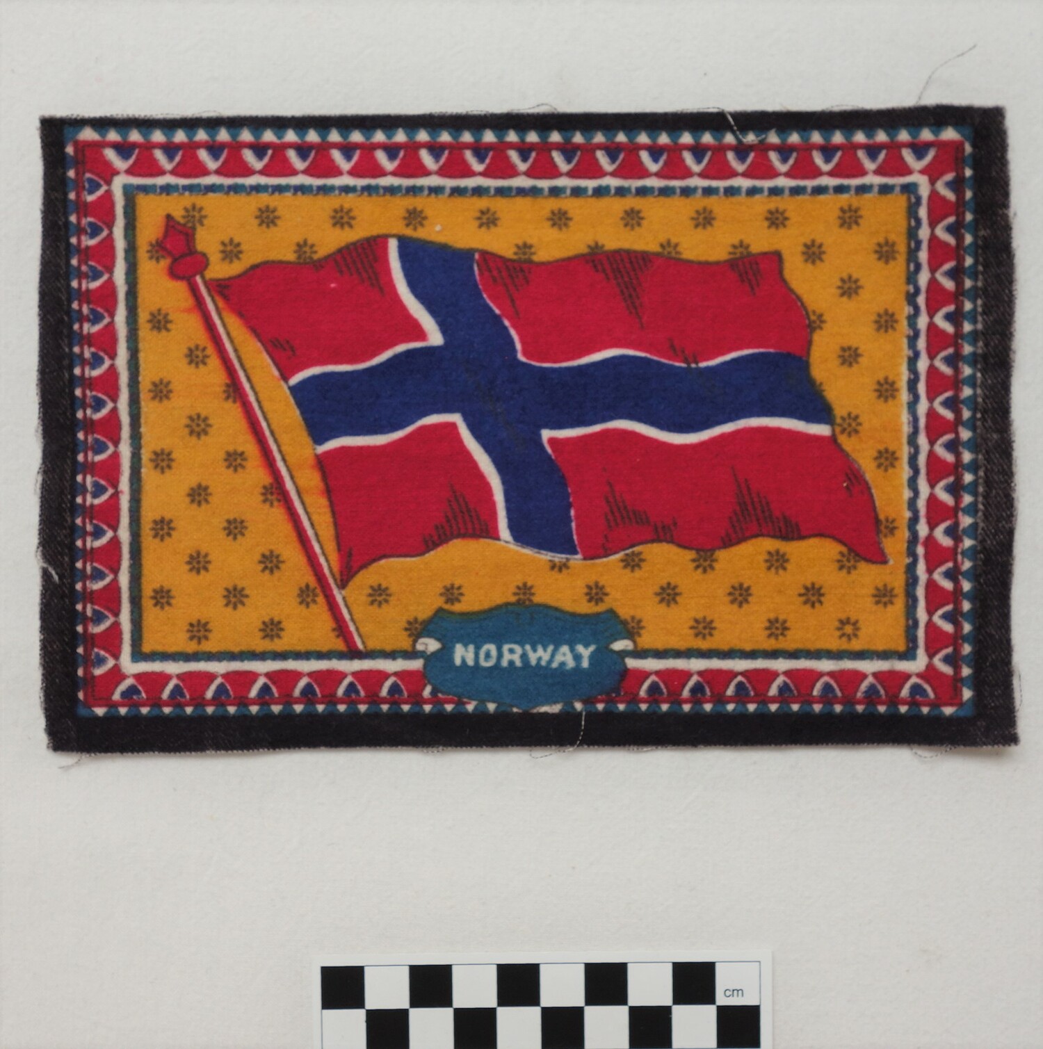 Factory woven and printed cloth appliqué. (1)