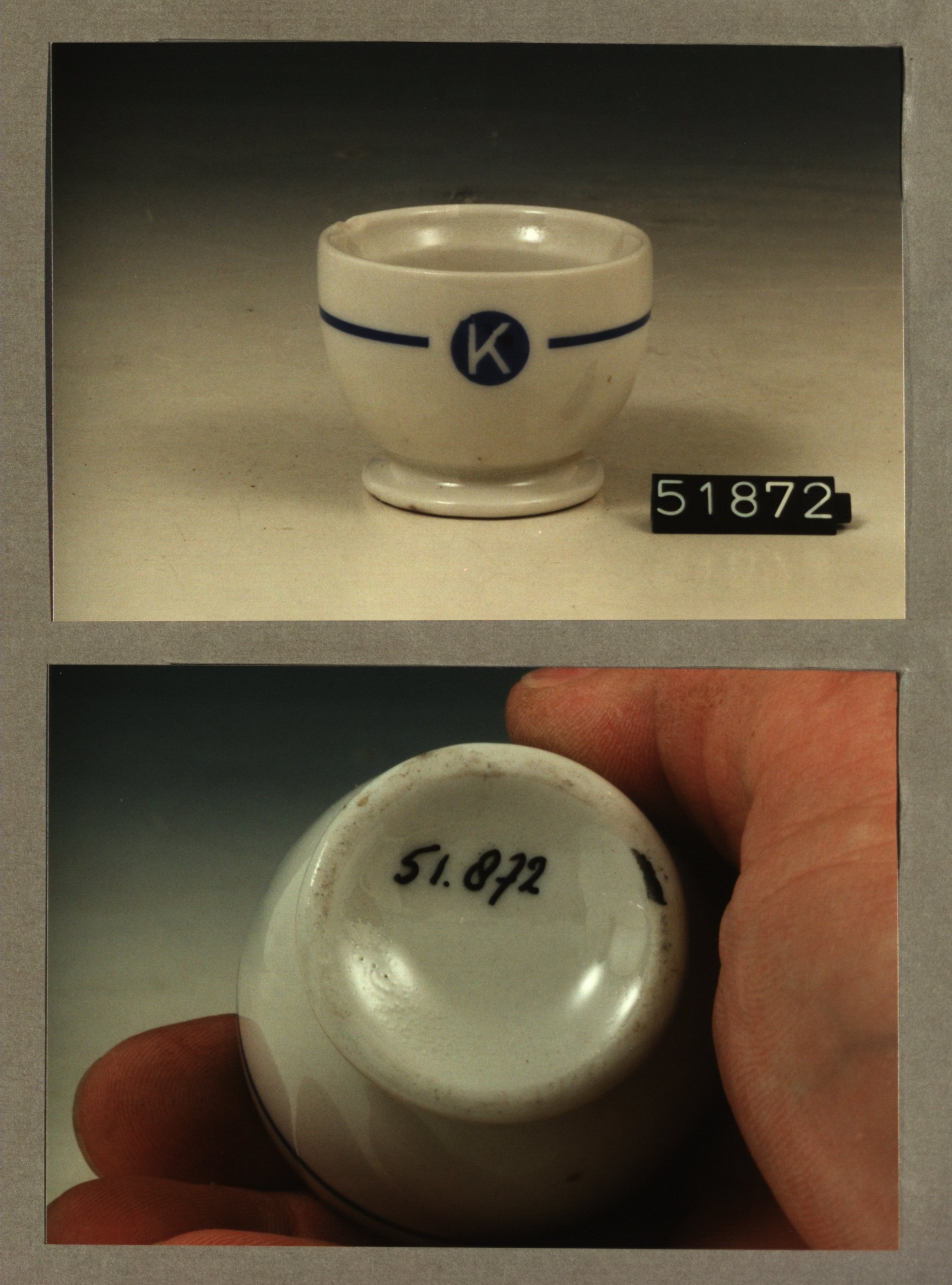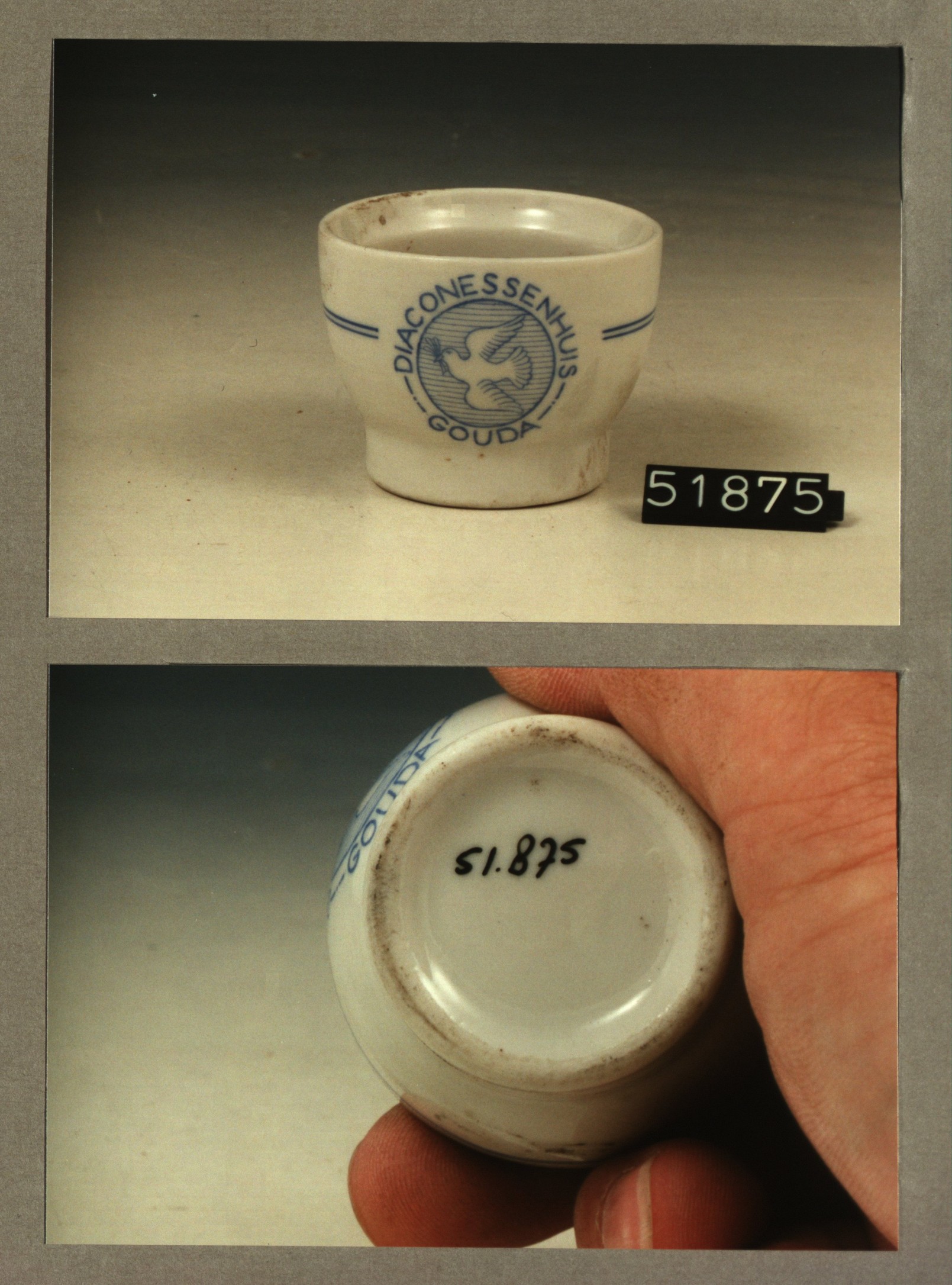 Eierdop, model C met decor Diaconessenhuis Gouda