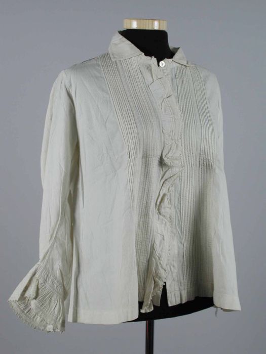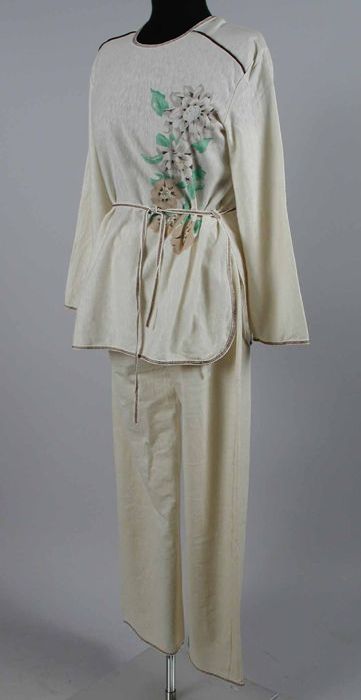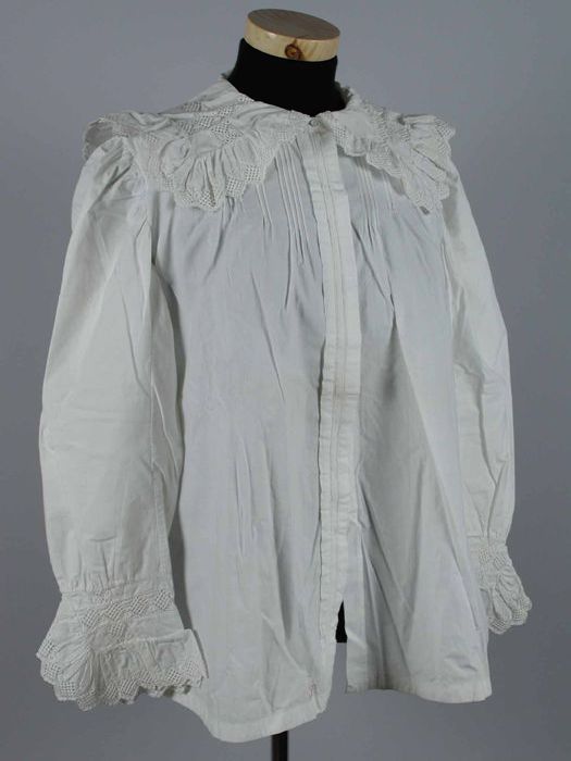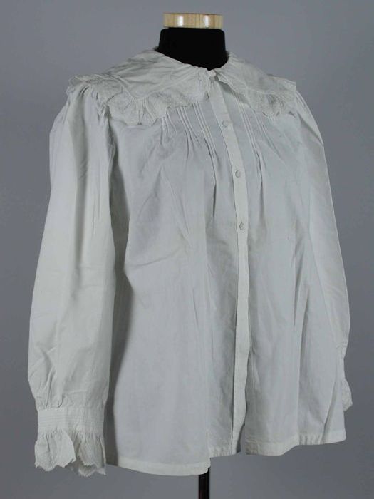 Lang wit bedjasje met lange mouw en boordje afgezet ...