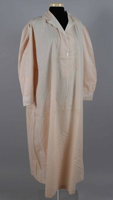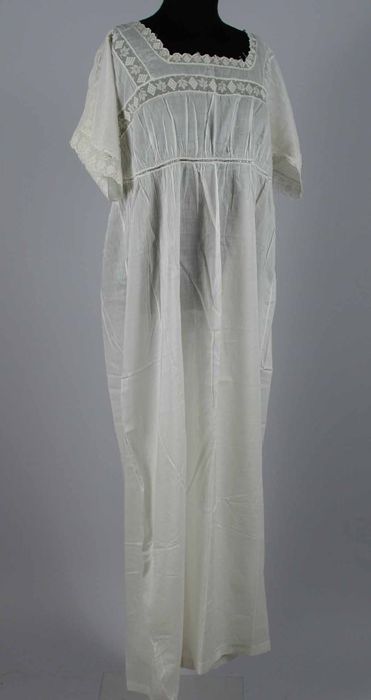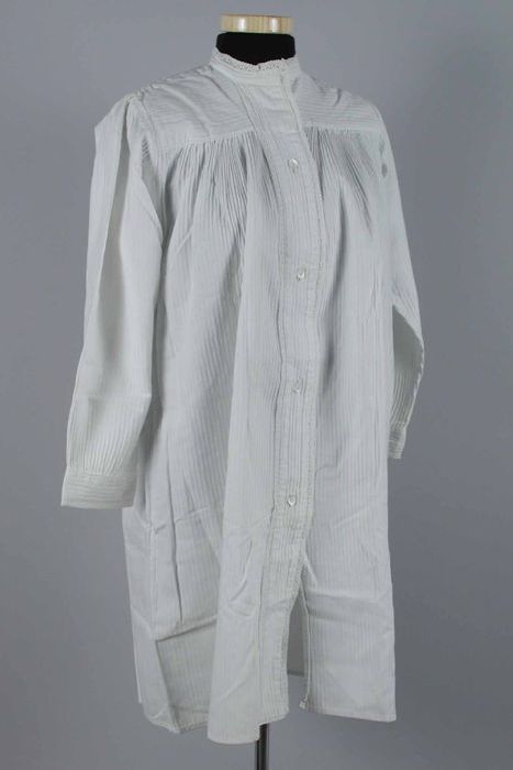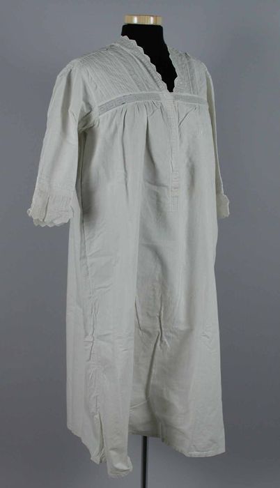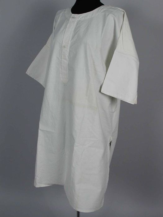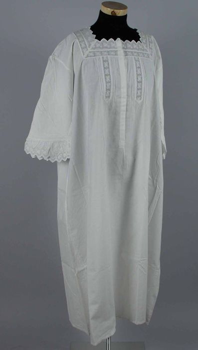 Halflang wijd en recht nachthemd van wit katoen, "F.O."