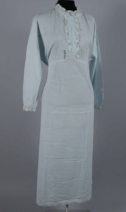 Lange wijduitlopende nachtjapon van lichtblauw katoe...