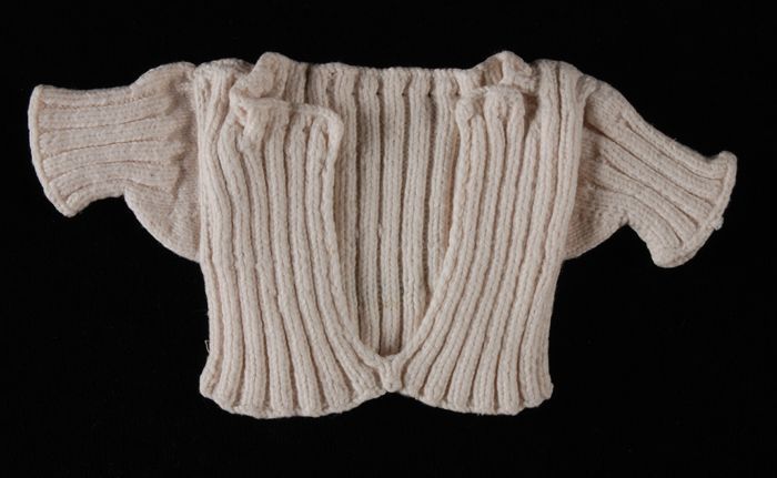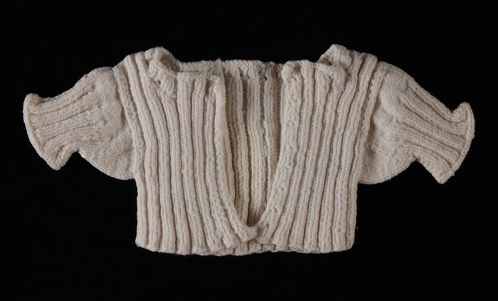 Wit bedjasje met lange mouw met ruche en grote kraag...